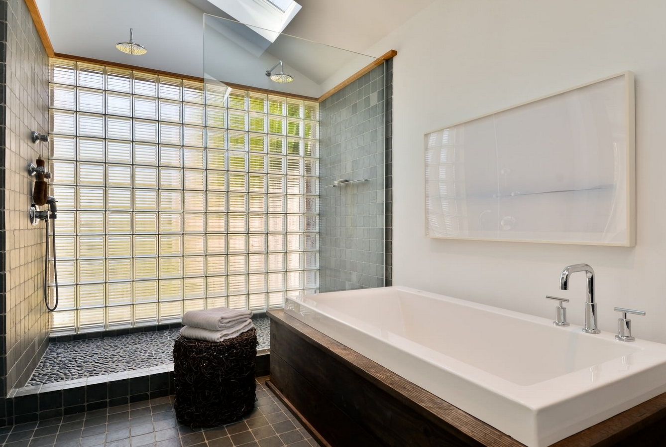Чёрные стеклоблоки в интерьере ванной