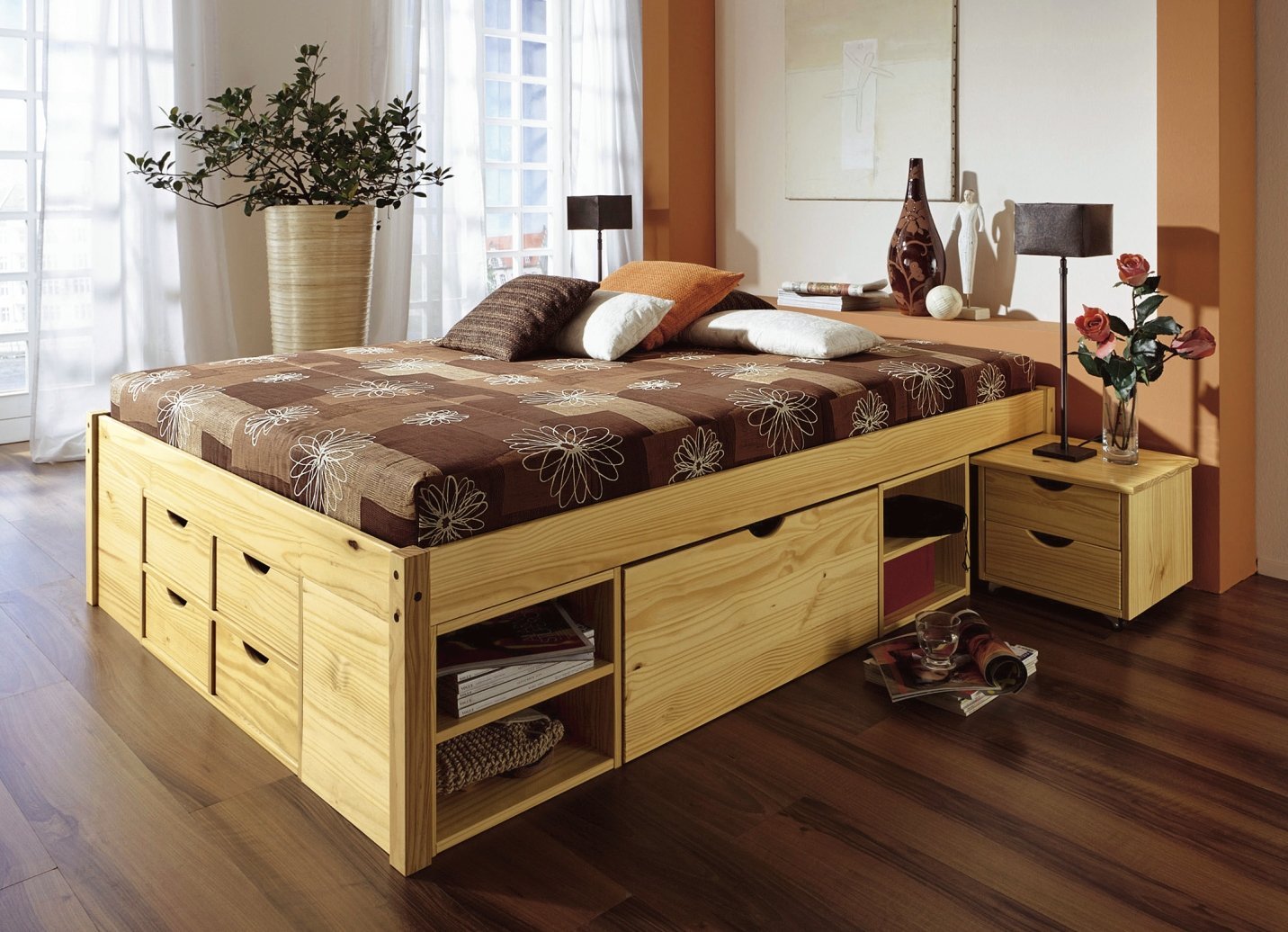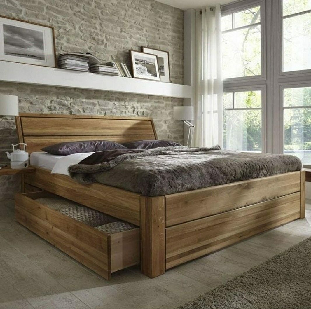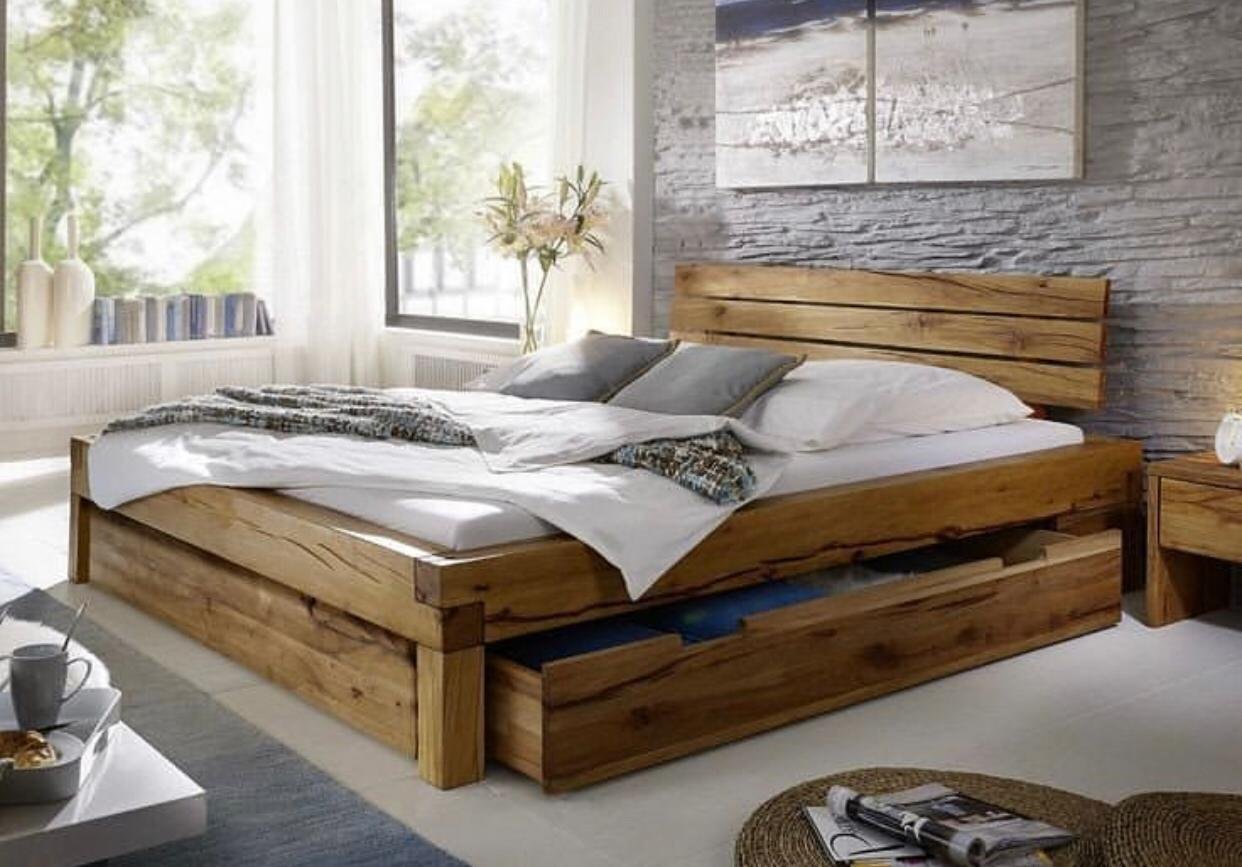 Деревянная кровать с ящиками
