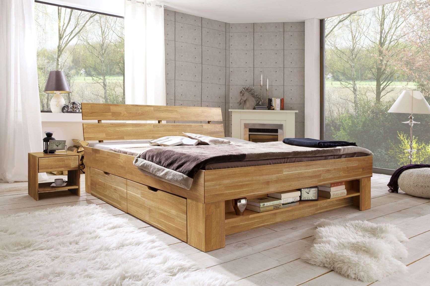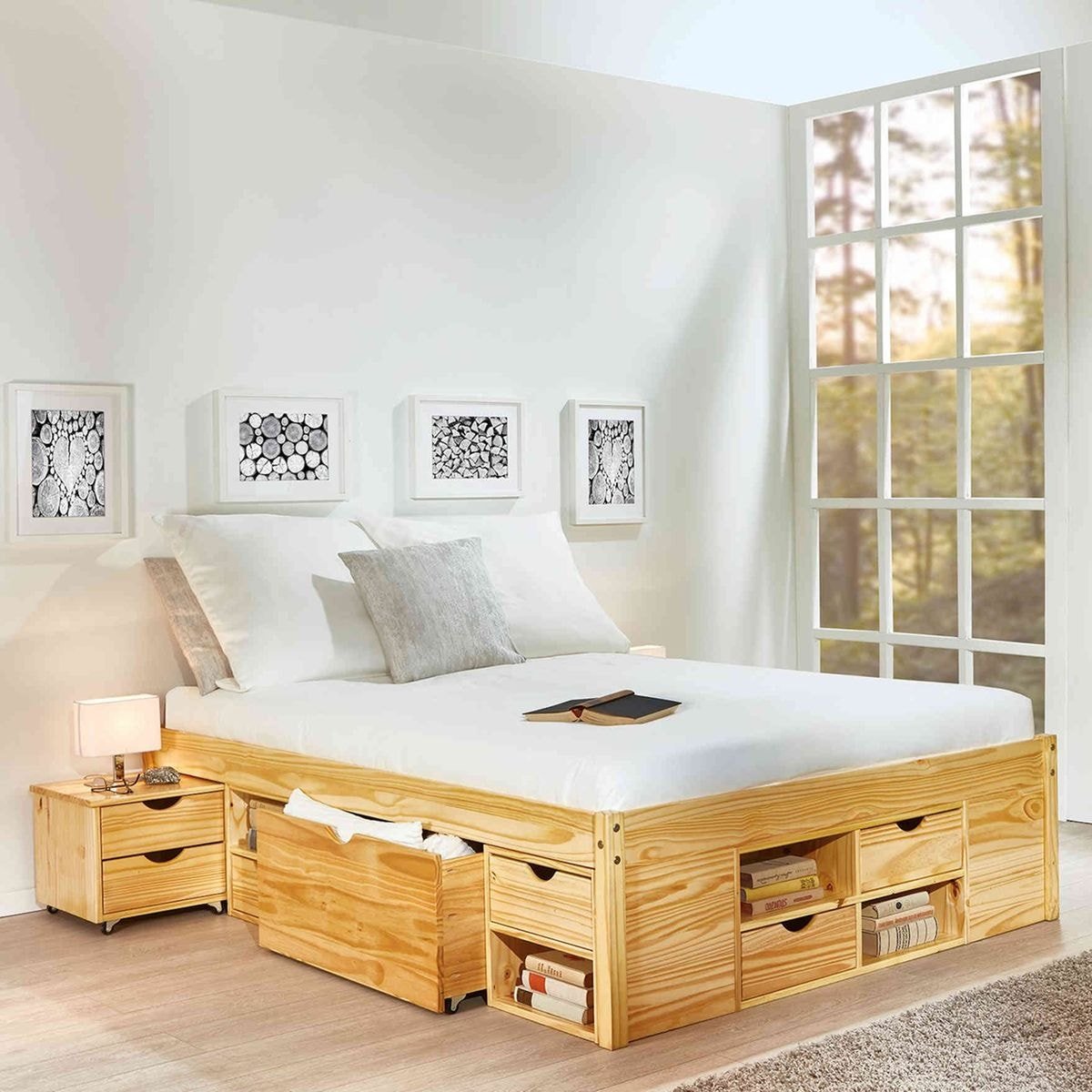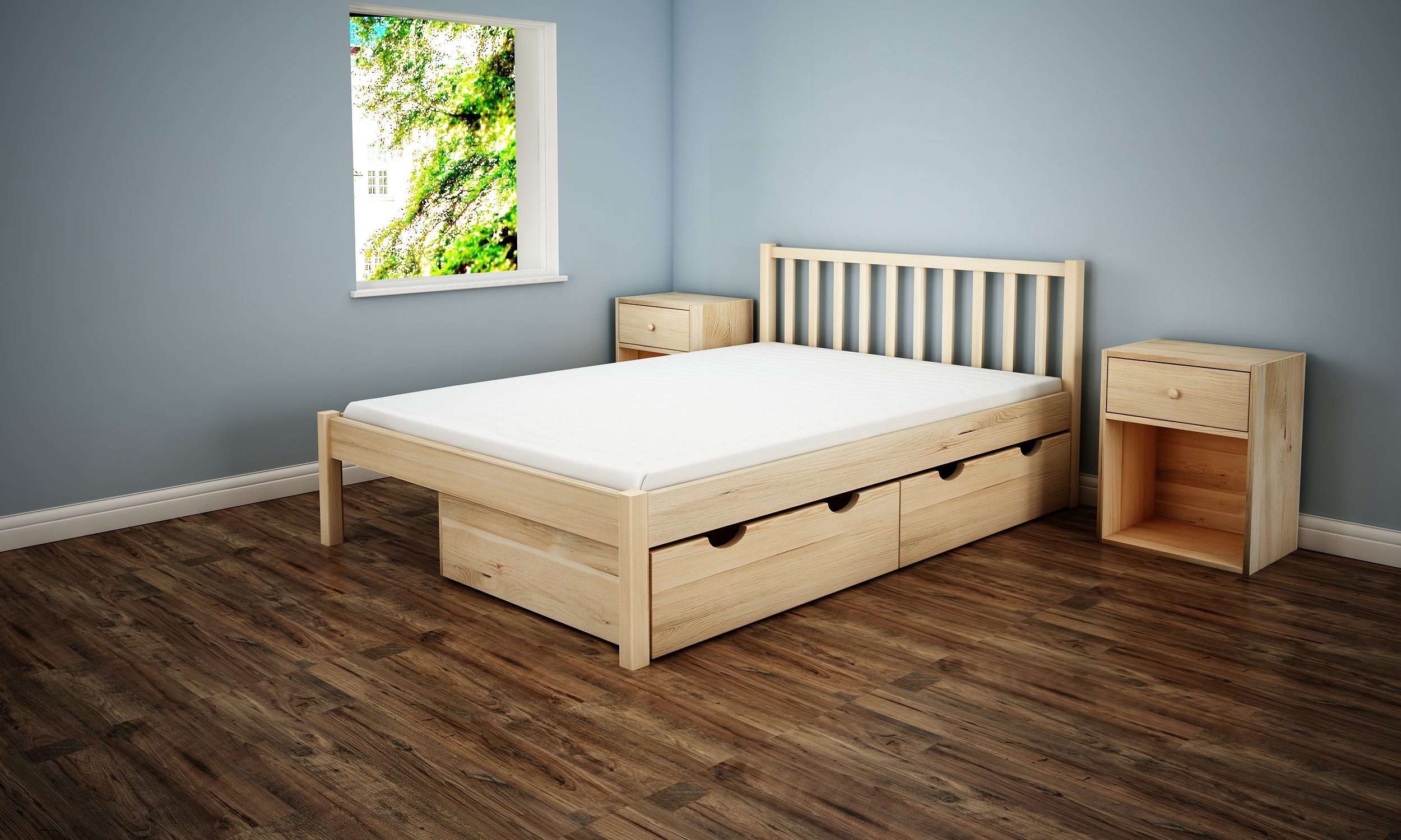 Деревянная кровать с ящиками