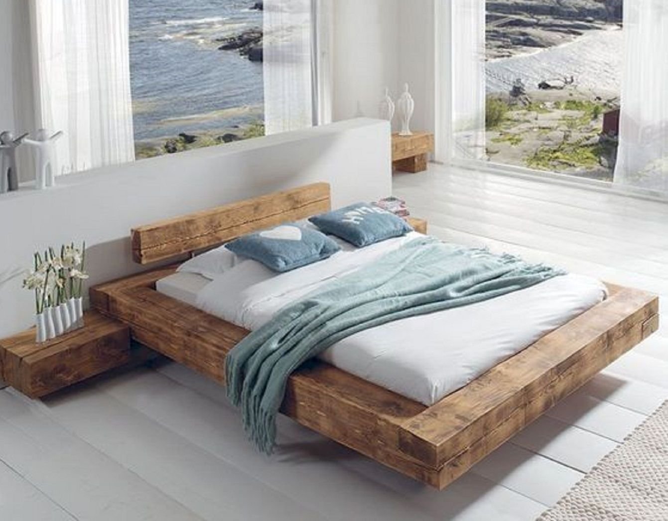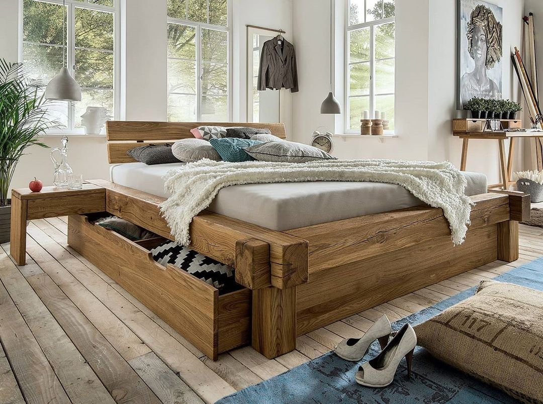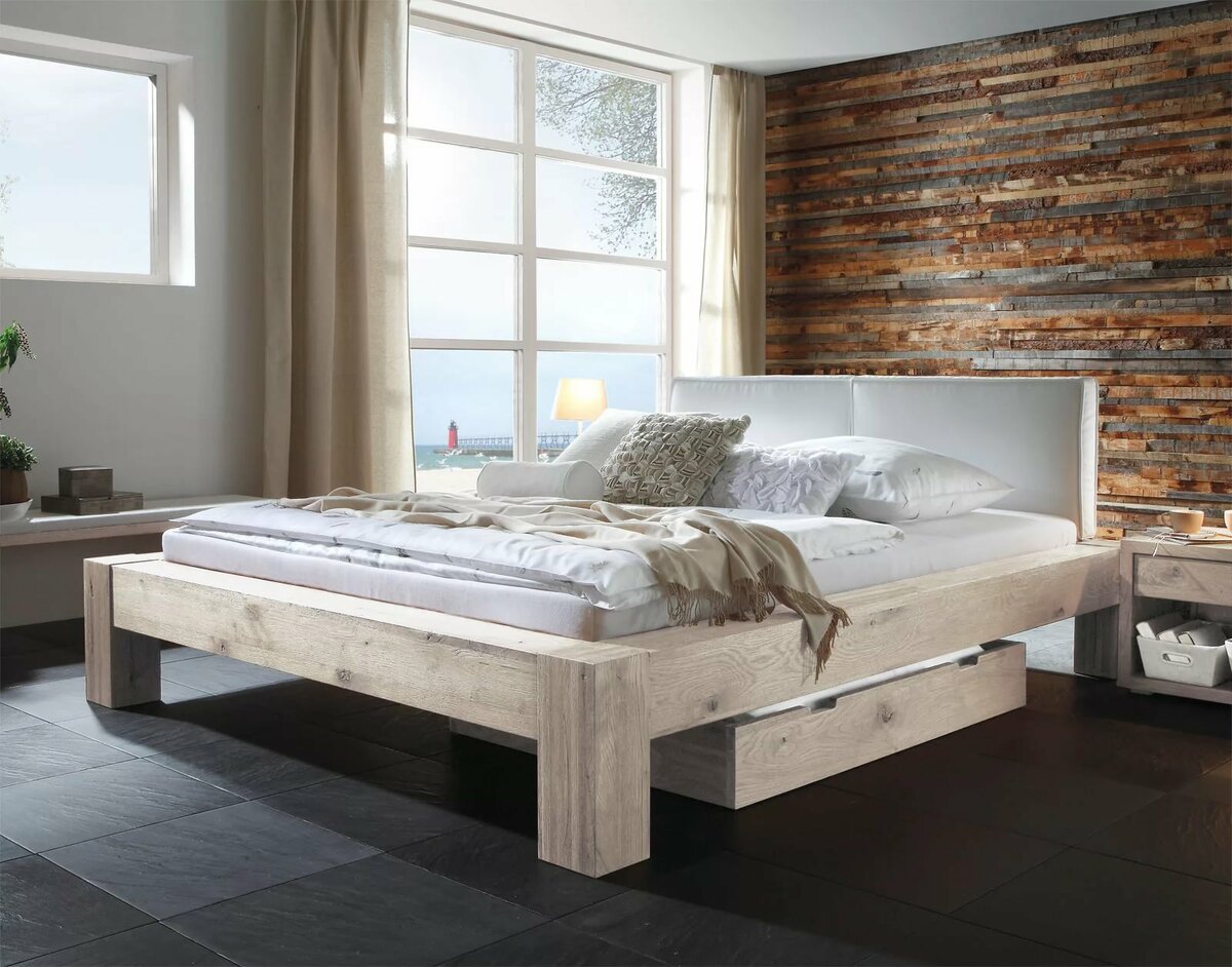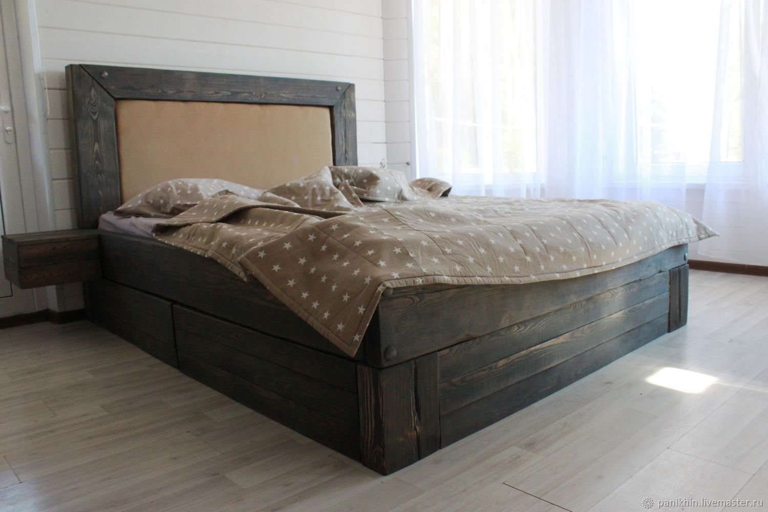 Кровать из досок в современном стиле