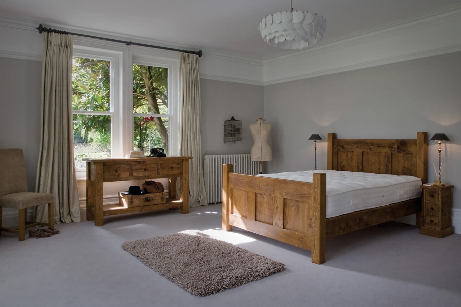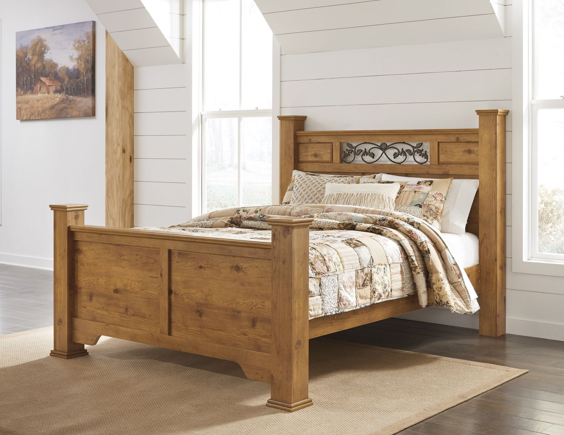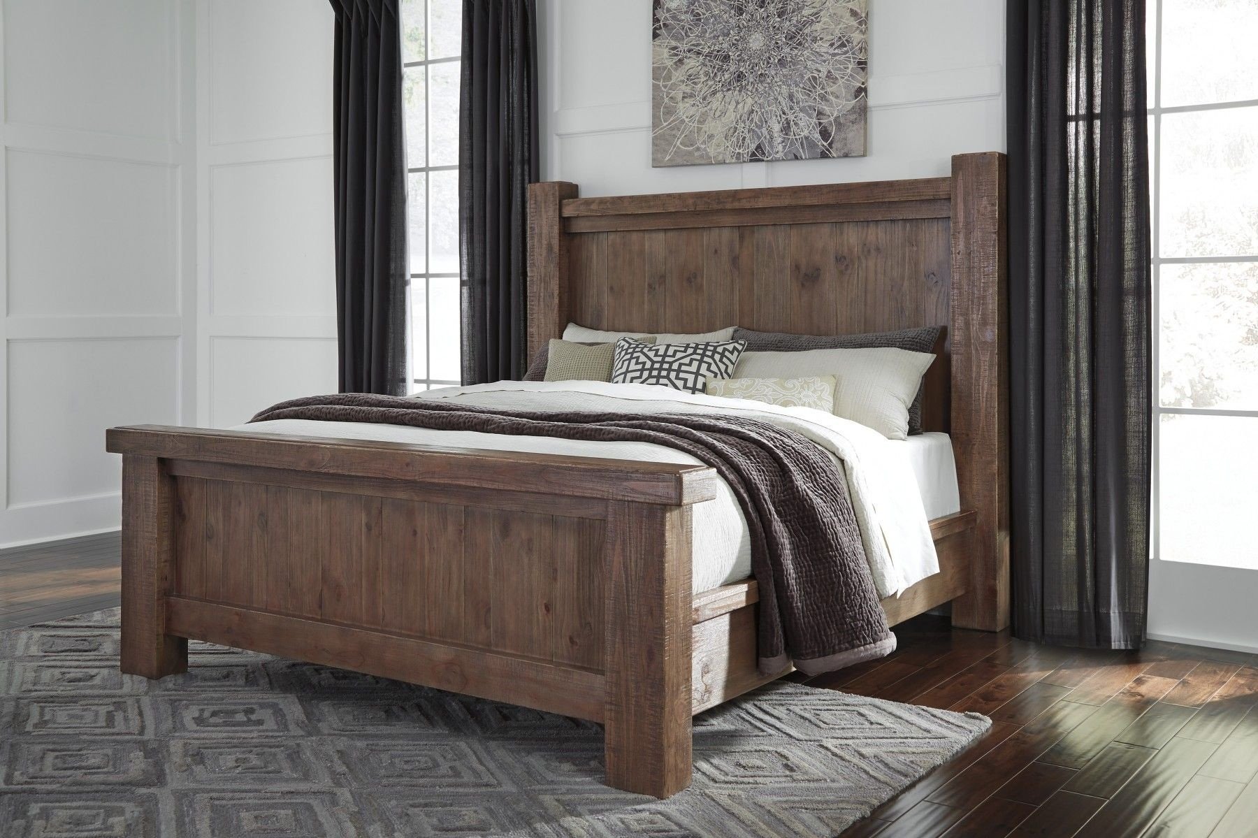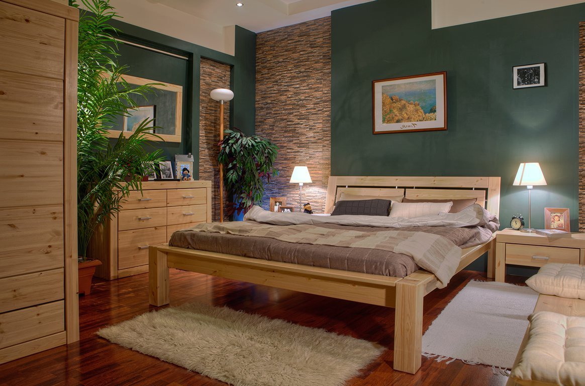 Спальня с деревянной кроватью