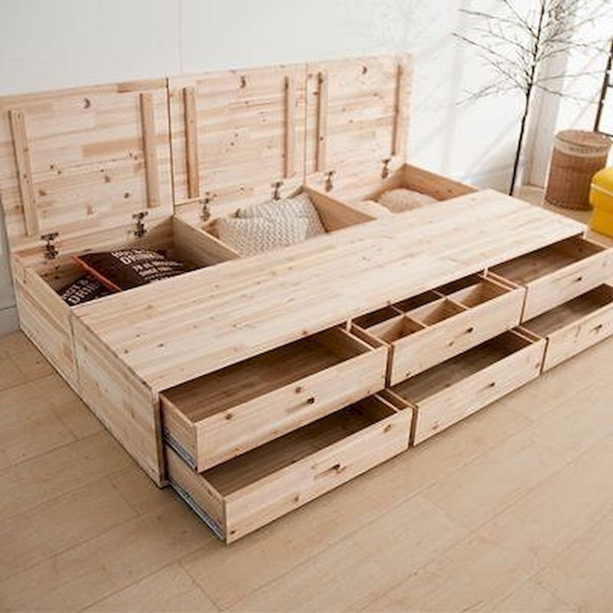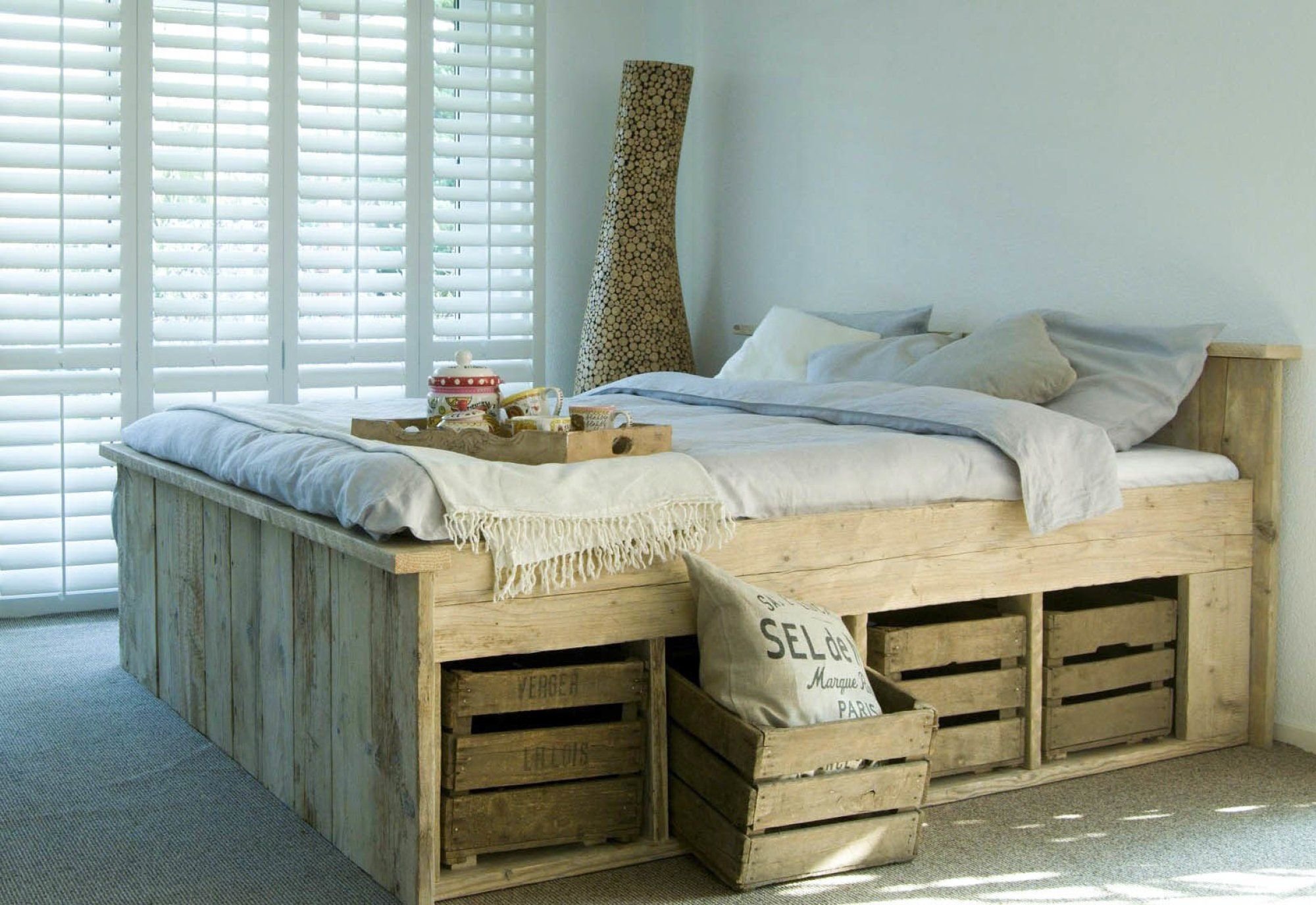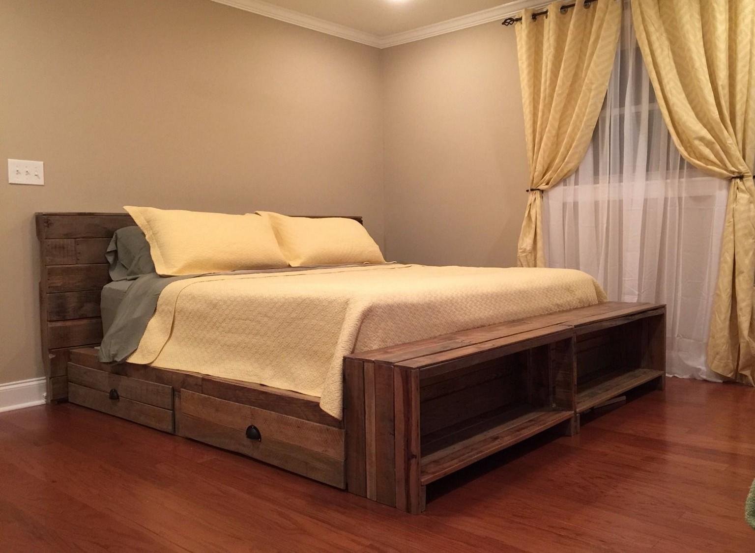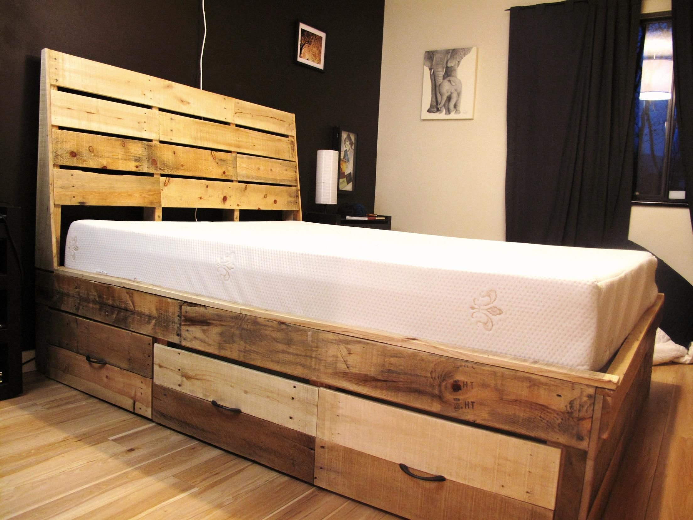 Кровать из поддонов с выдвижными ящиками