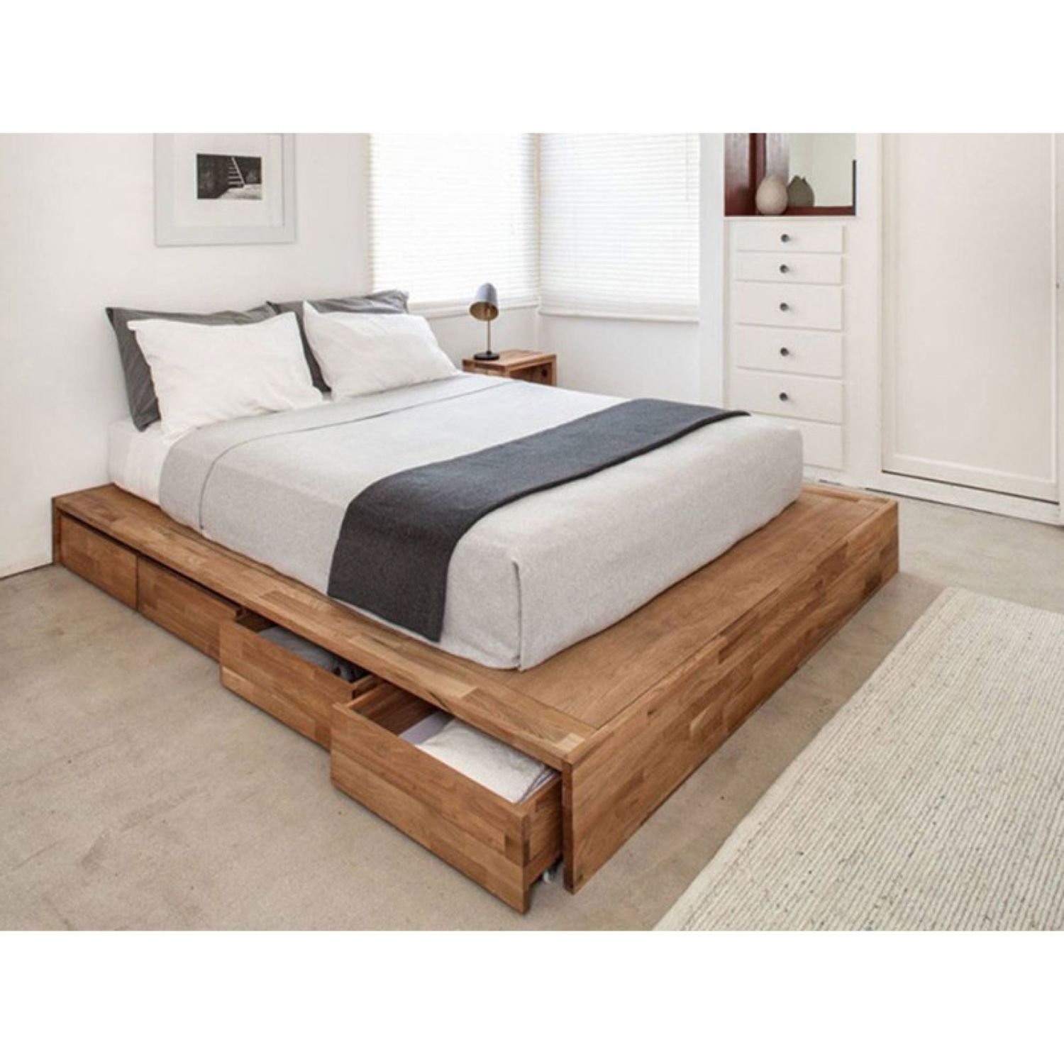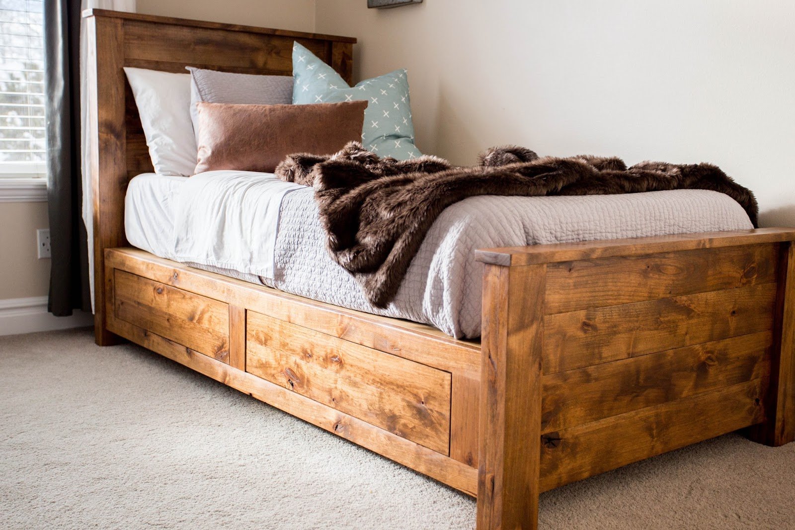 Самодельная двуспальная кровать с ящиками