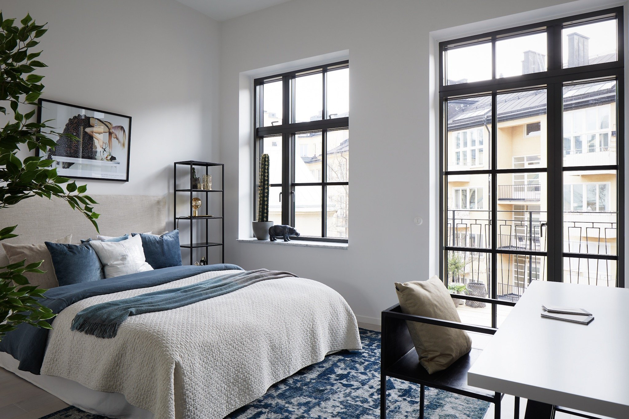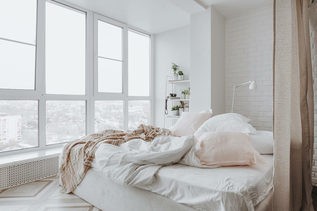 Спальня с большими окнами