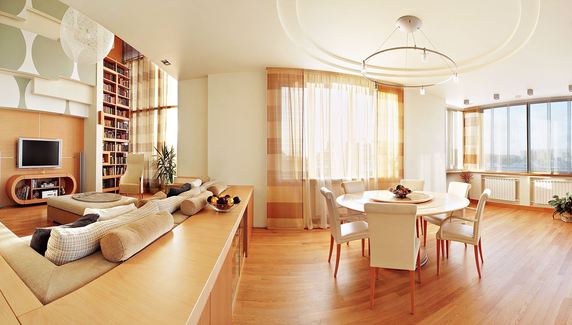 Планировка гостиной с панорамными окнами