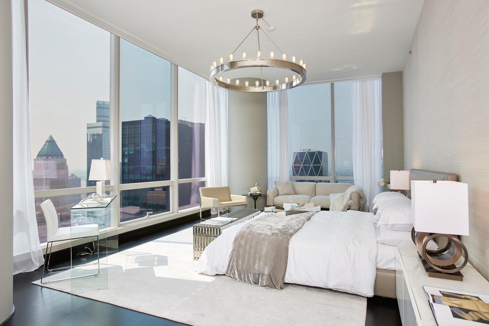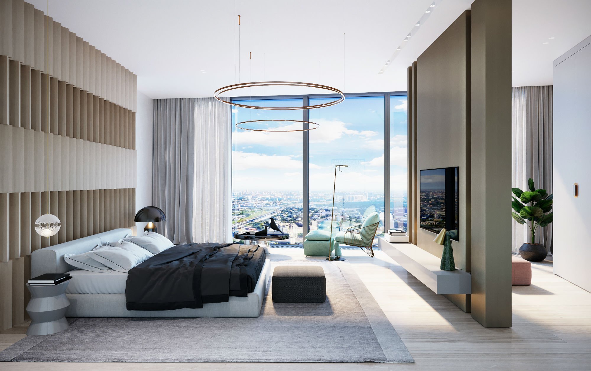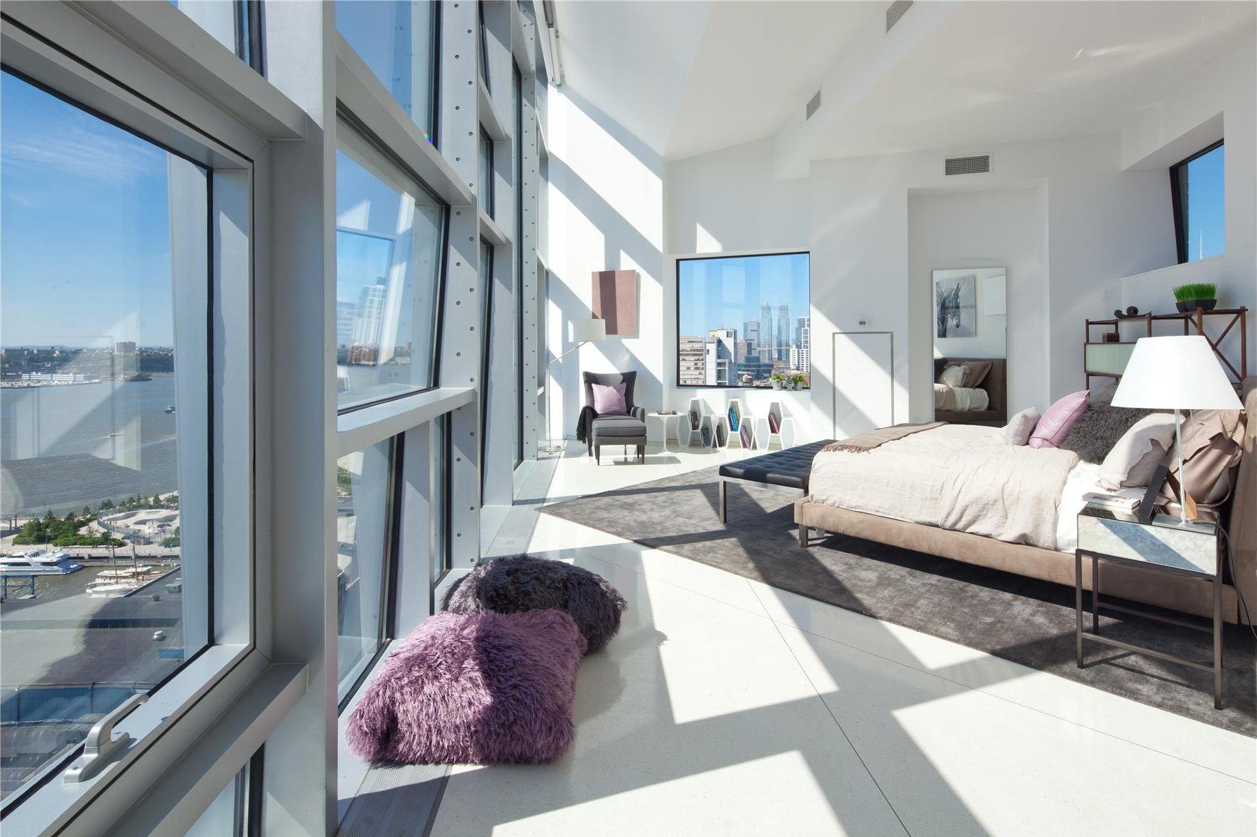 Спальня с панорамными окнами в квартире