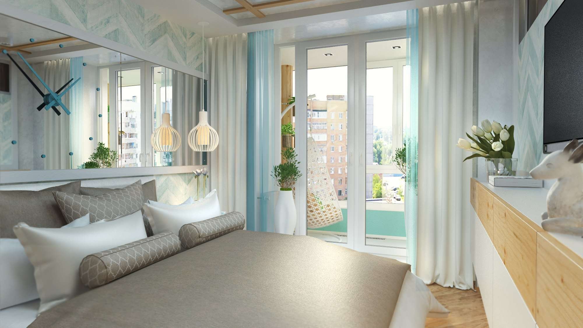 Спальня гостиная панорамное окно