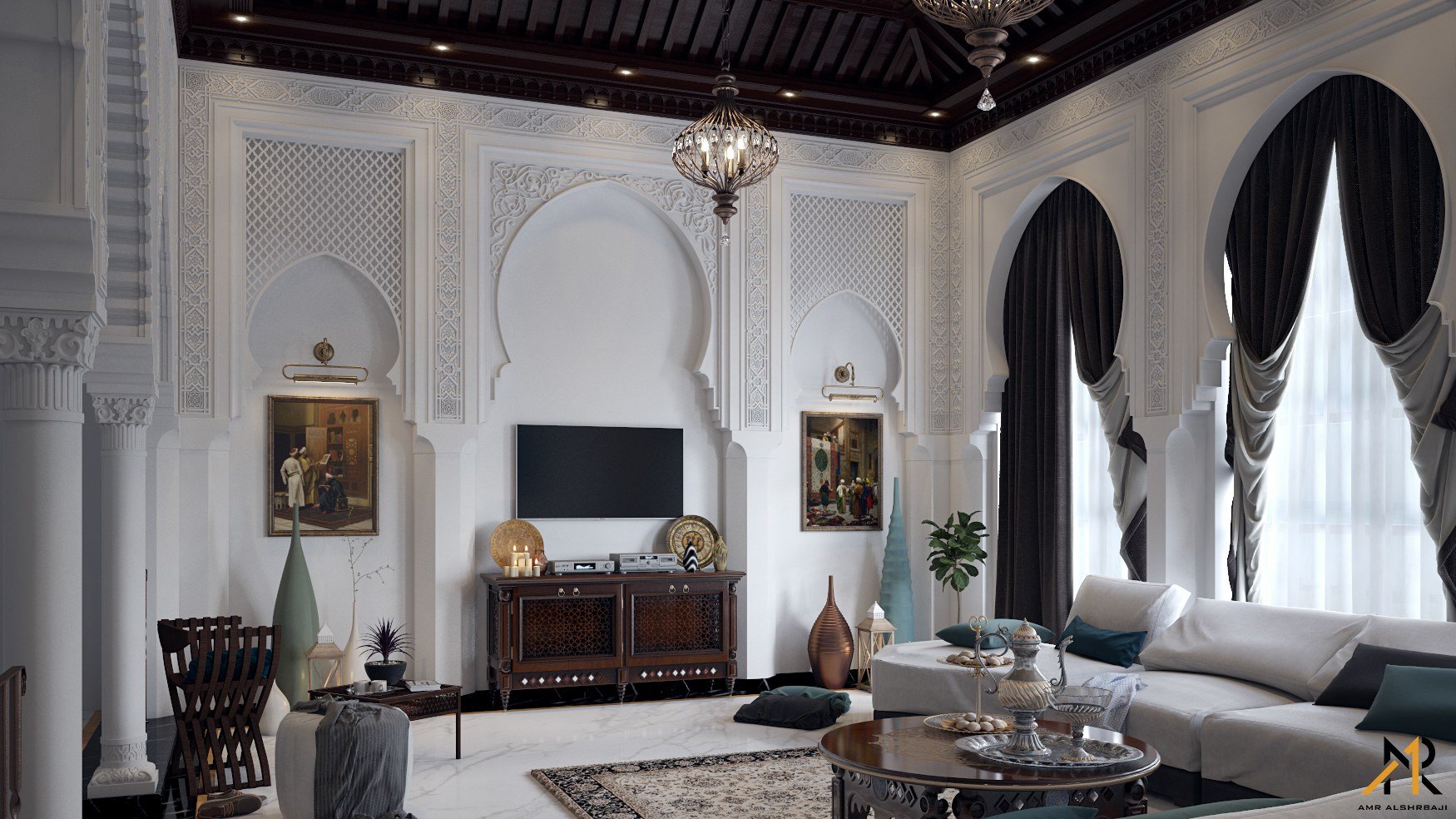 Гостиная с телевизором в арабском стиле