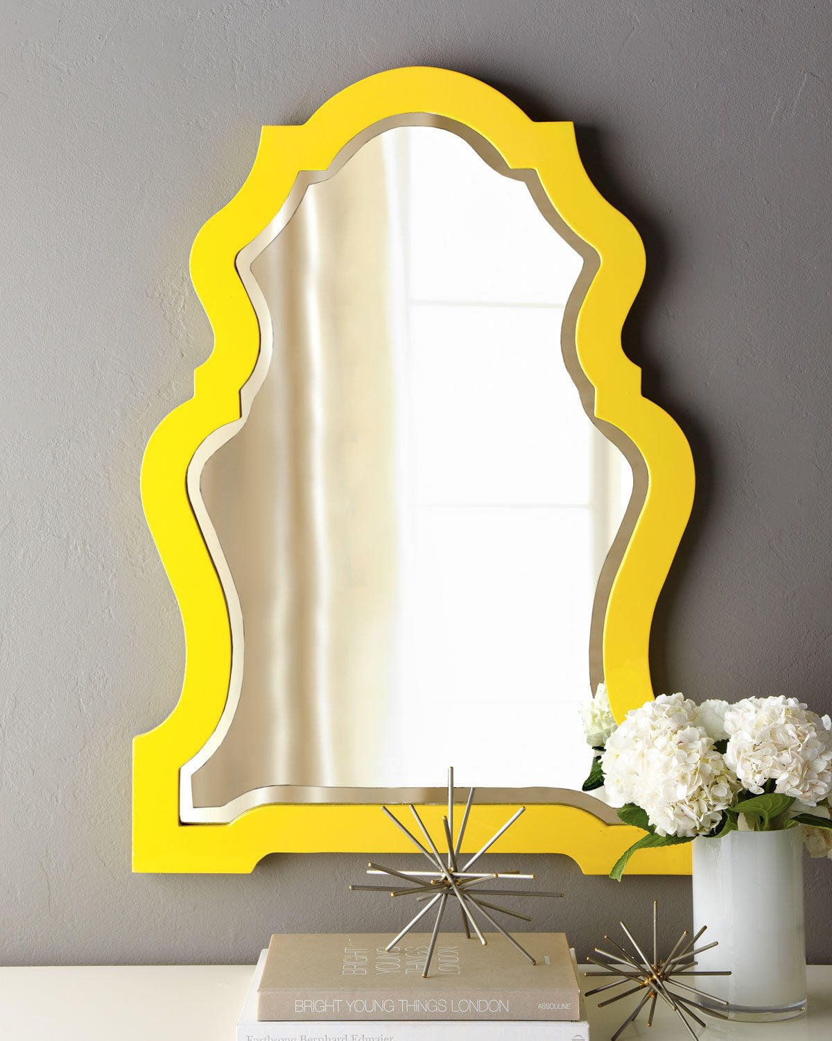 Зеркало на желтой стене