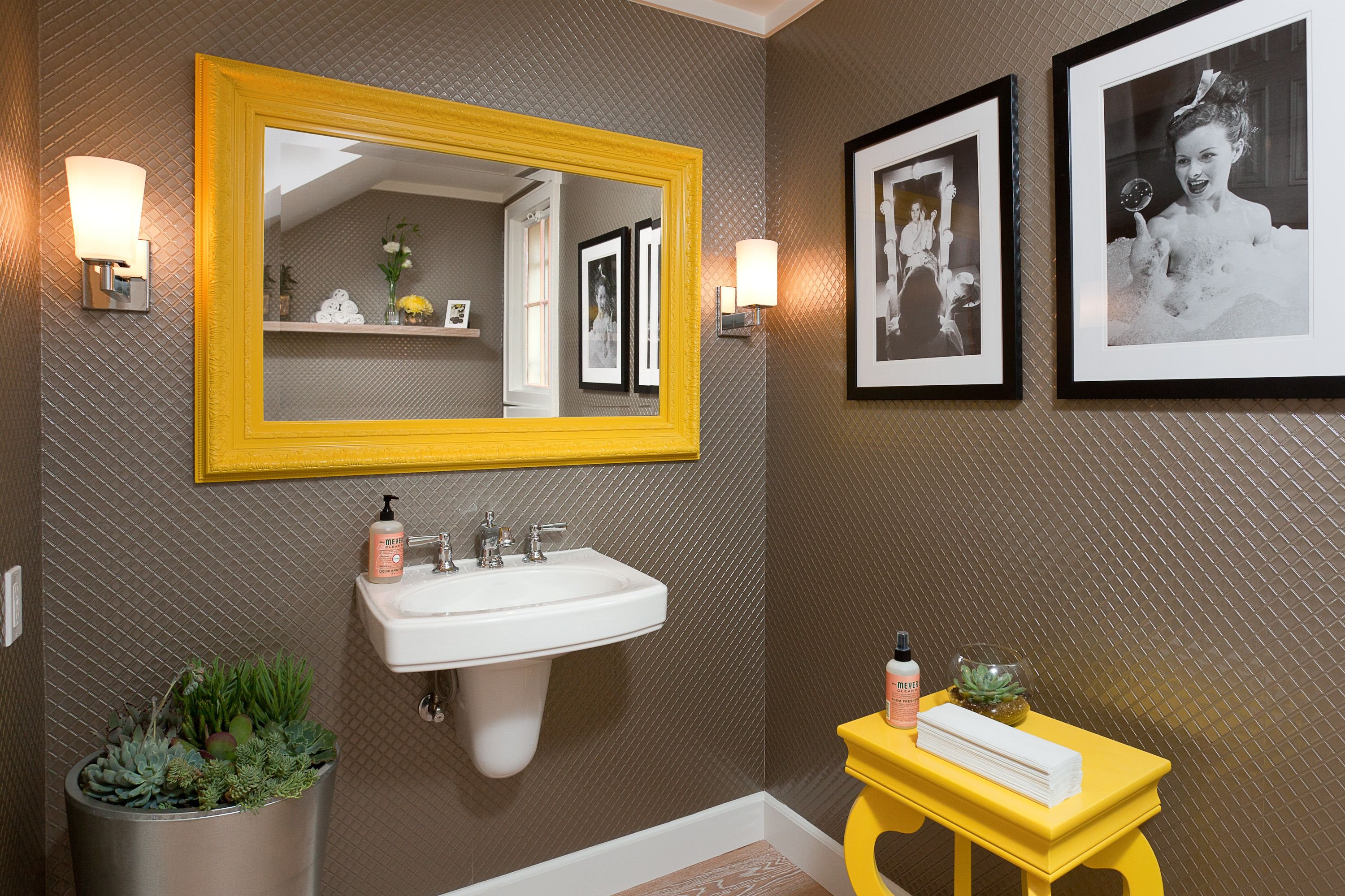 Желтое зеркало в ванную