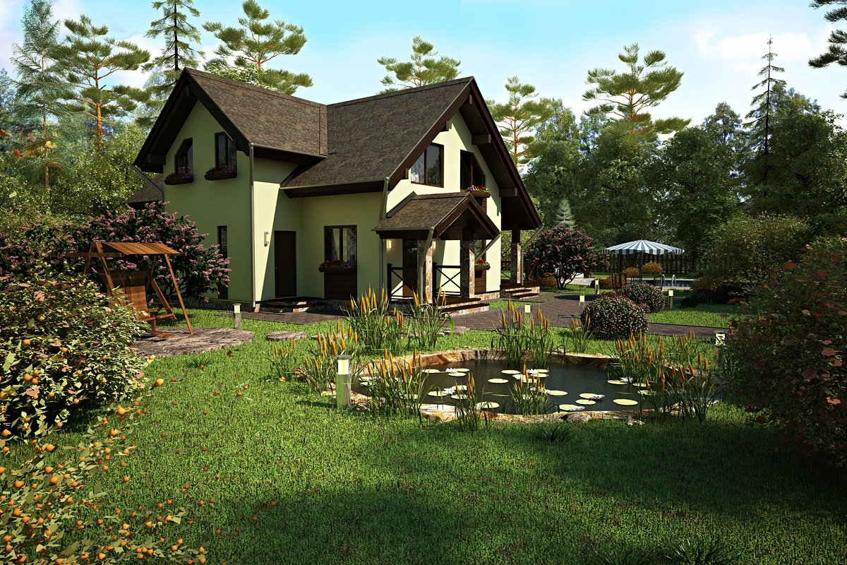 Красивые деревянные дома с участками