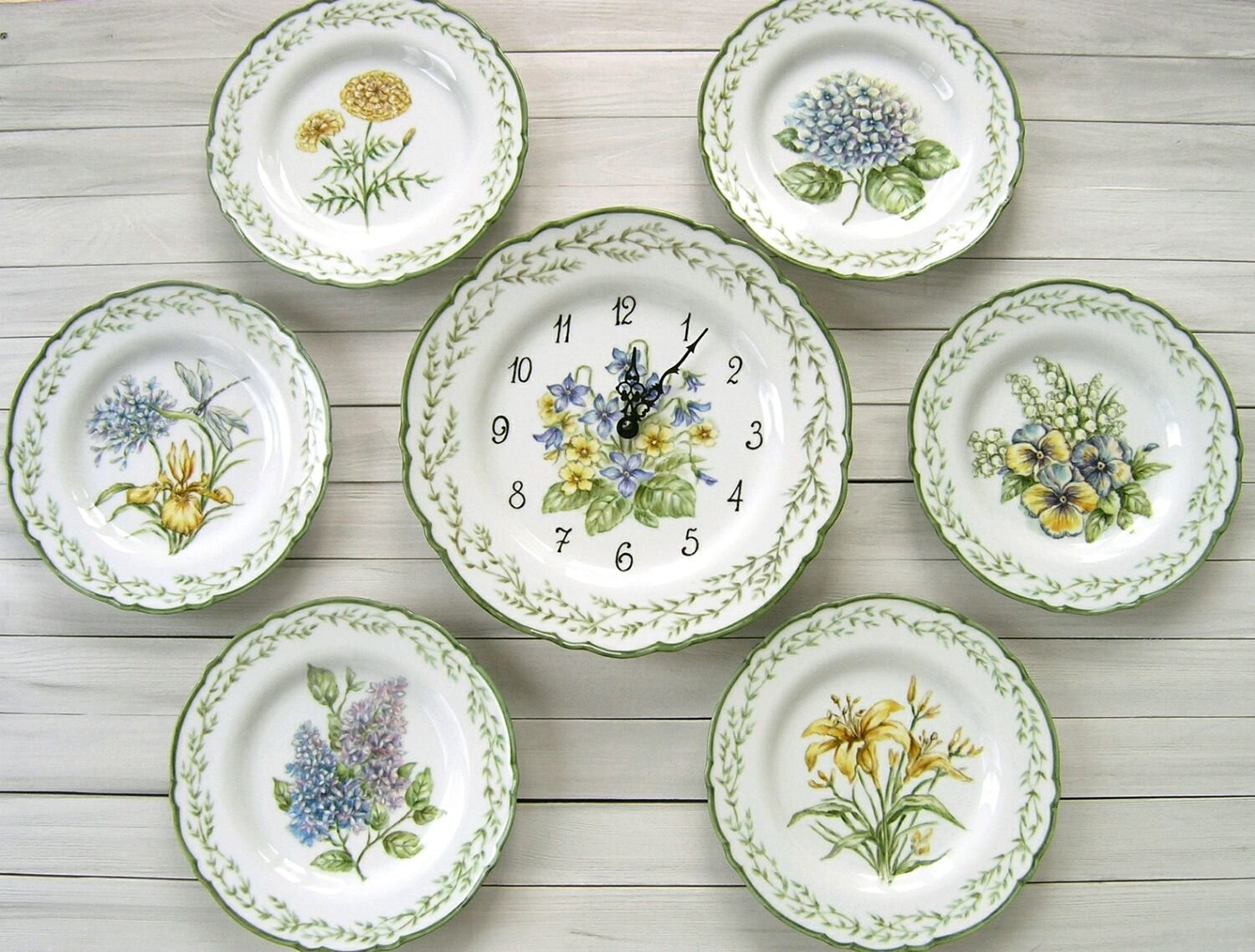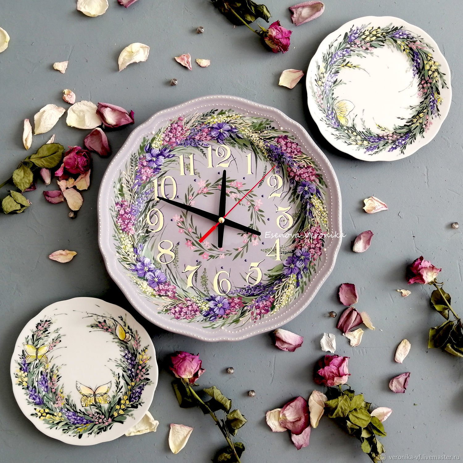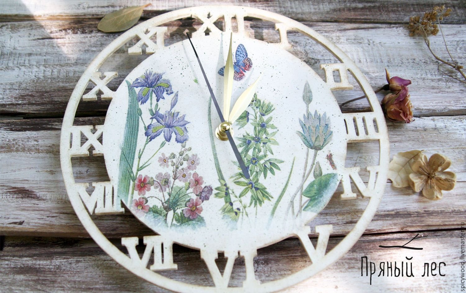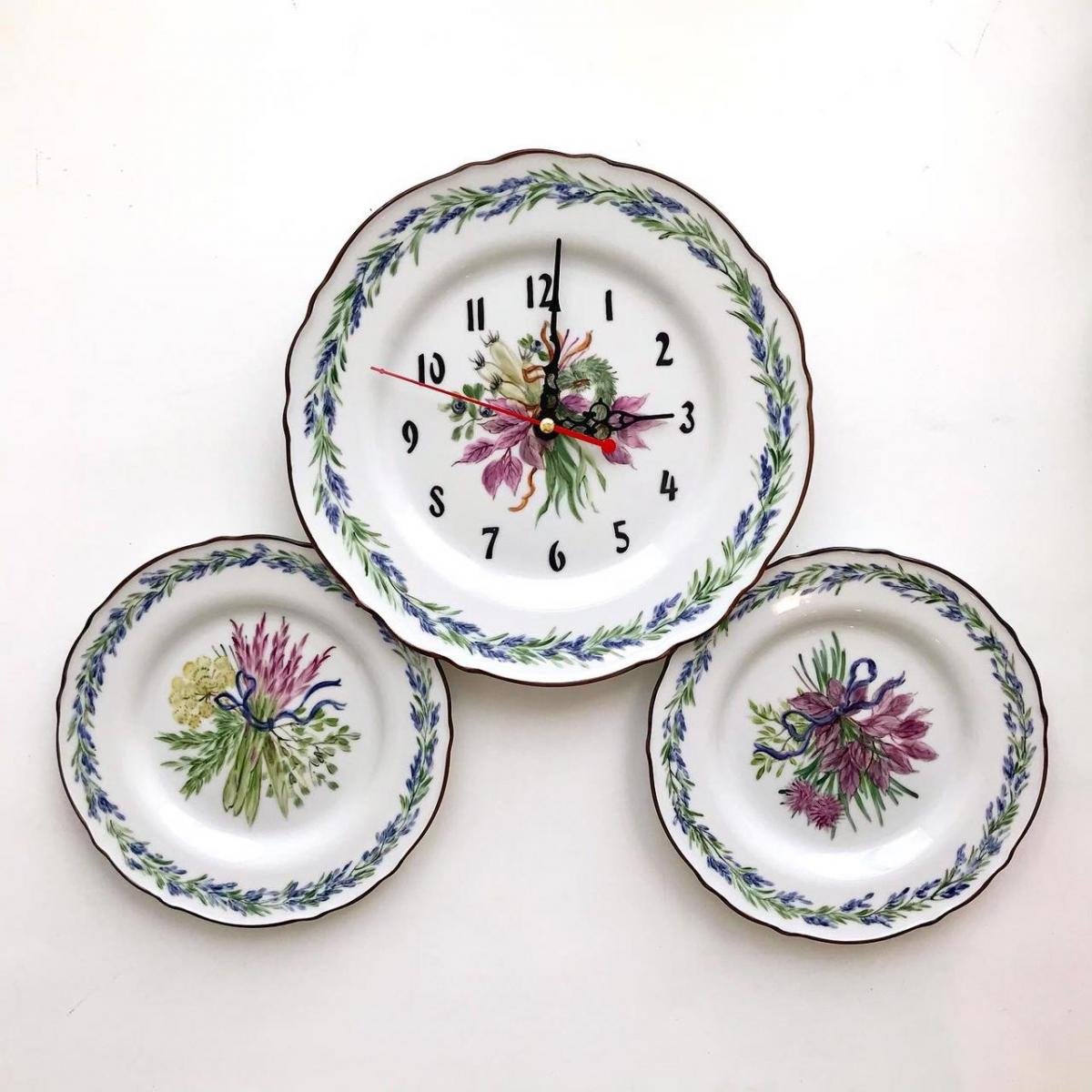 Часы тарелка декупаж с цветами