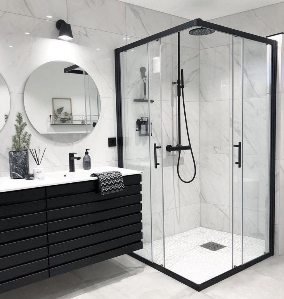 Черно белая душевая