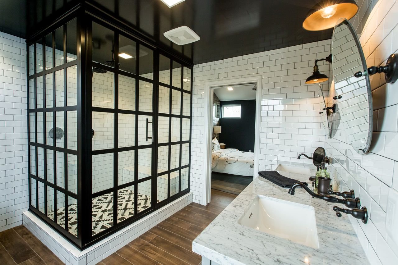 Ванная с черной душевой кабиной