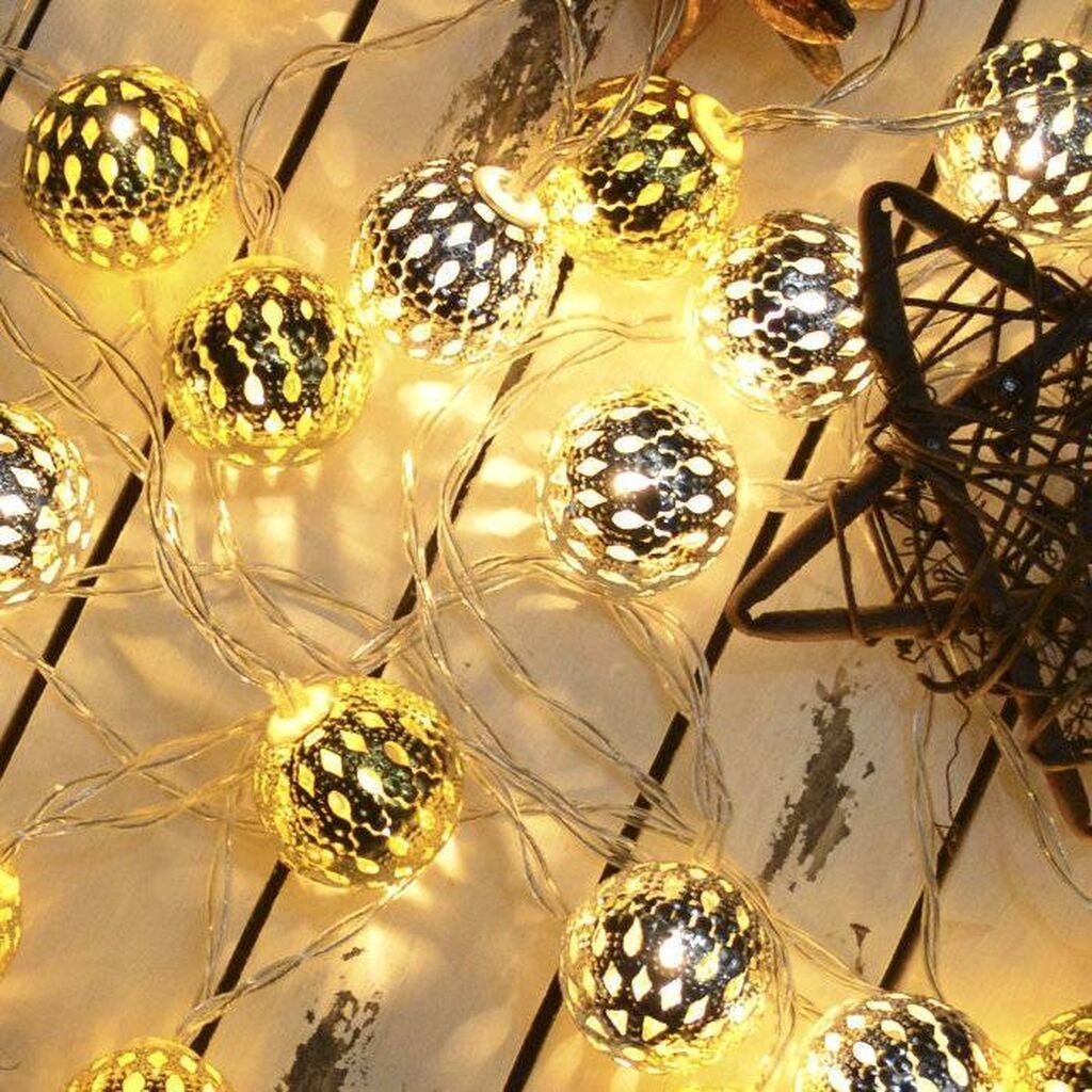 Гирлянда "металлические шарики" 10 led, 2 м золото (тёплый белый)