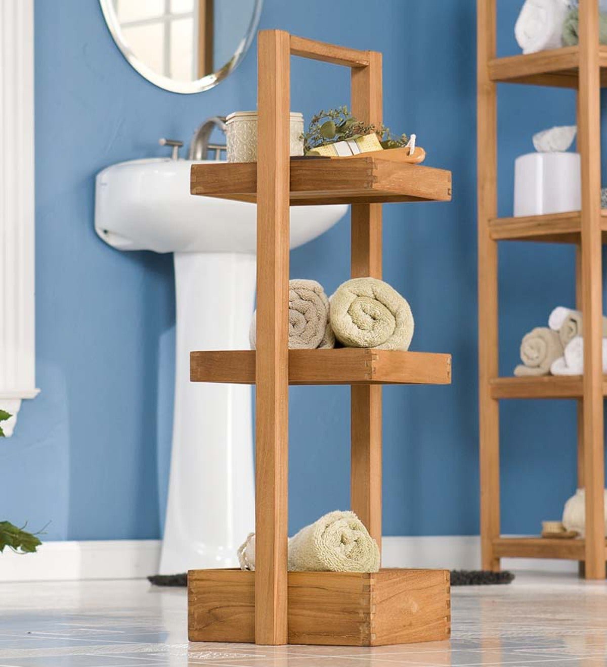 Деревянный стеллаж для ванной комнаты