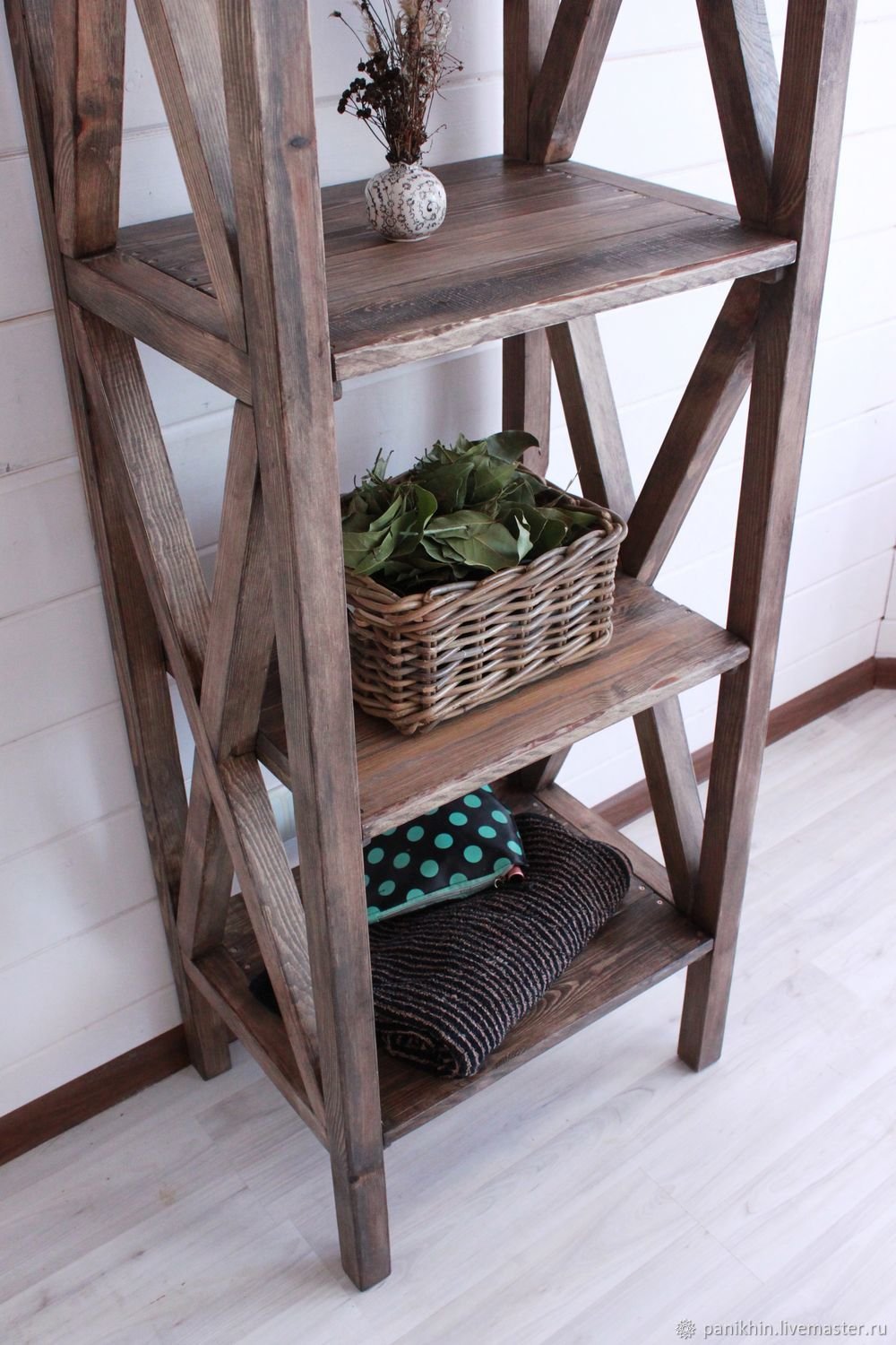 Деревянный стеллаж в ванную