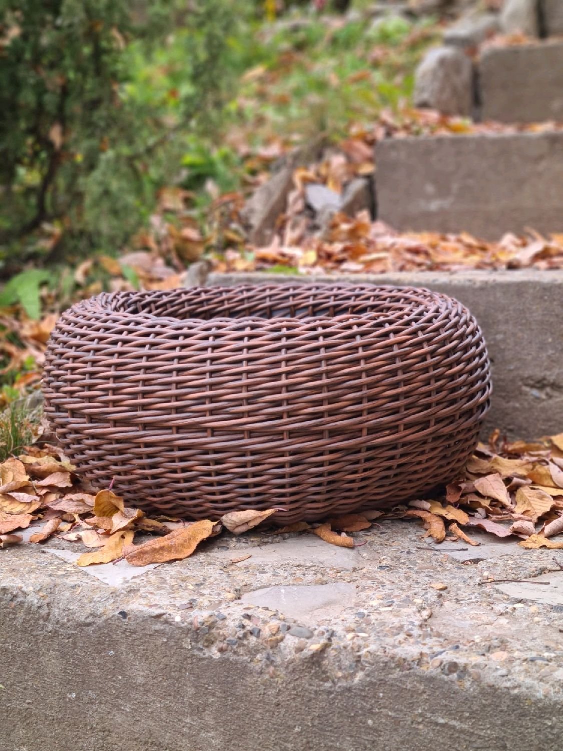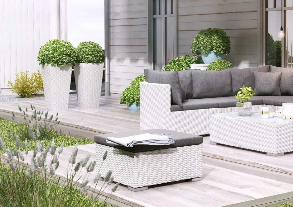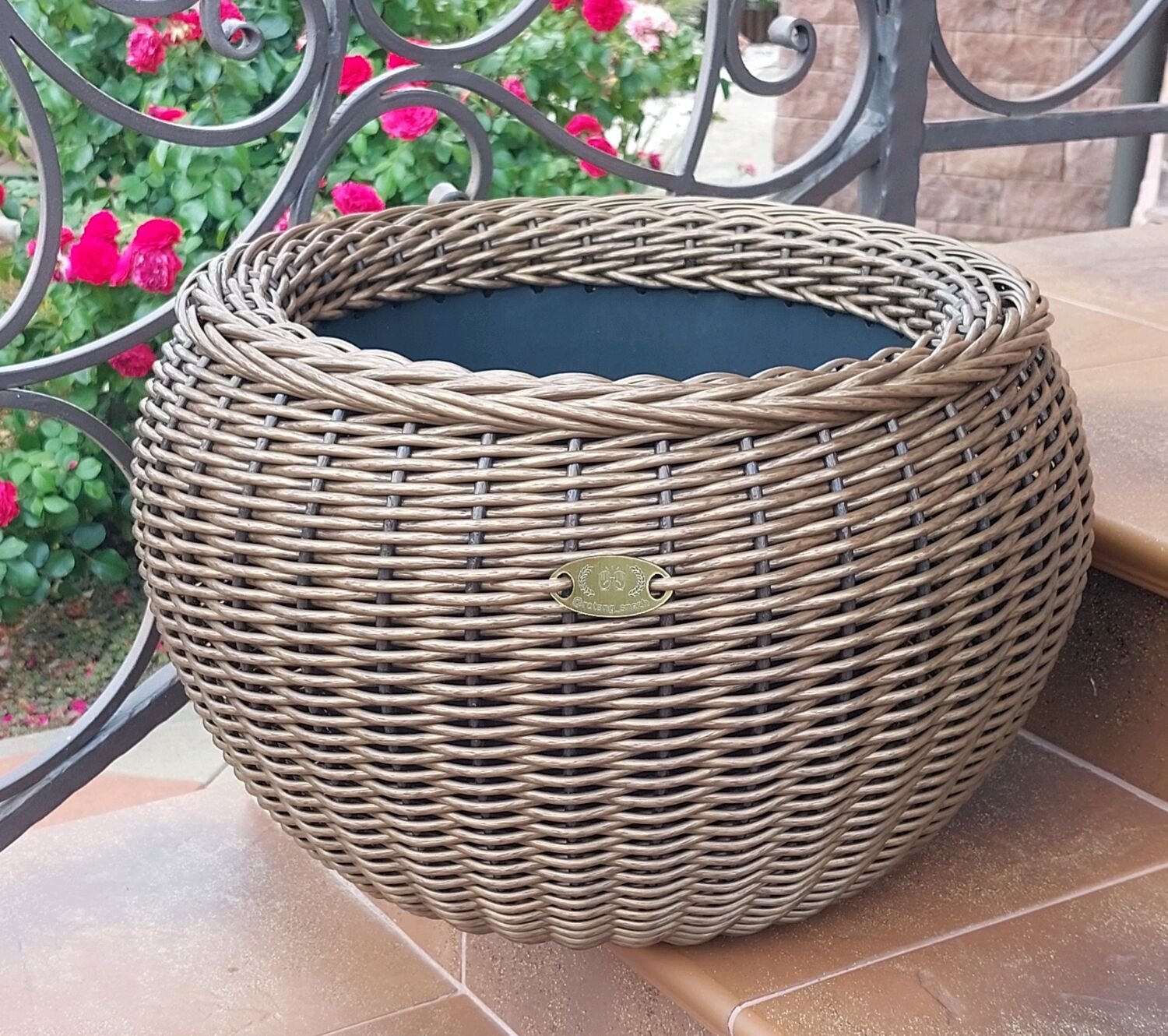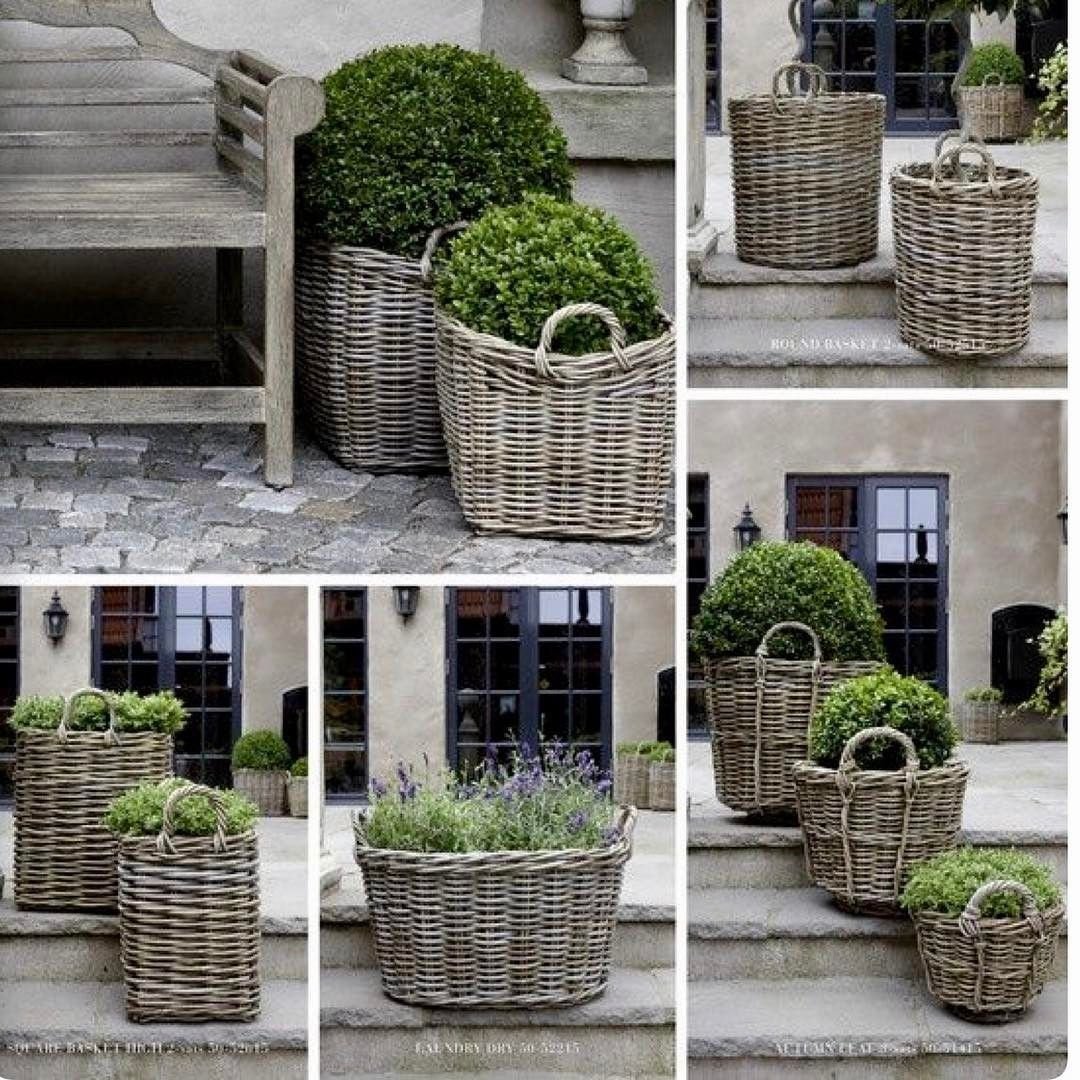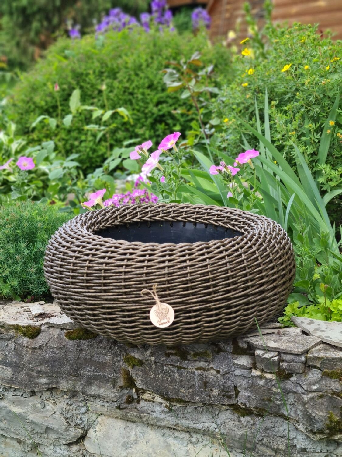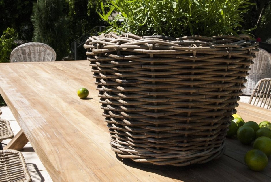 Кашпо из ротанга в саду