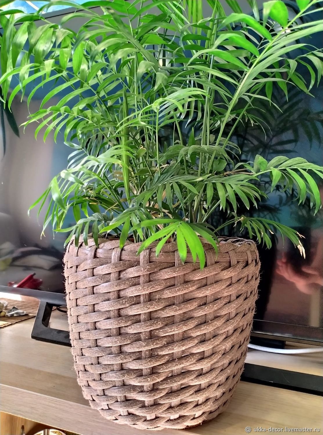 Кашпо из искусственного ротанга в интерьере