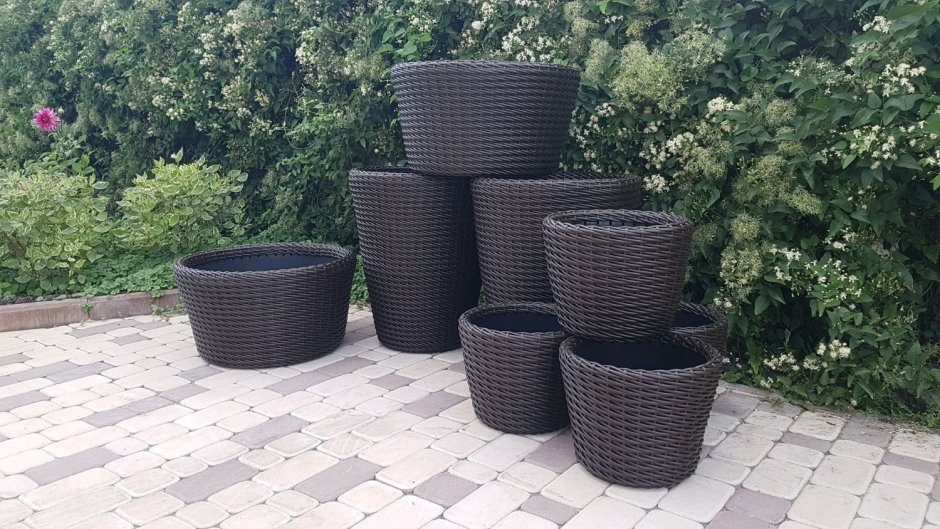 Вазоны из ротанга уличные для цветов