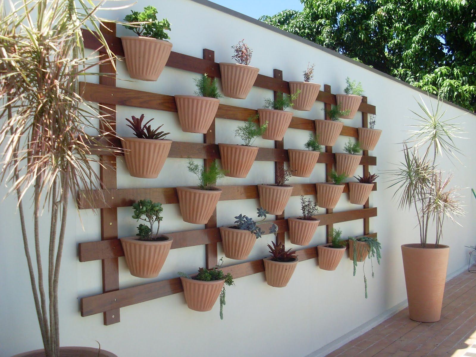 Деревянные горшки на террасе