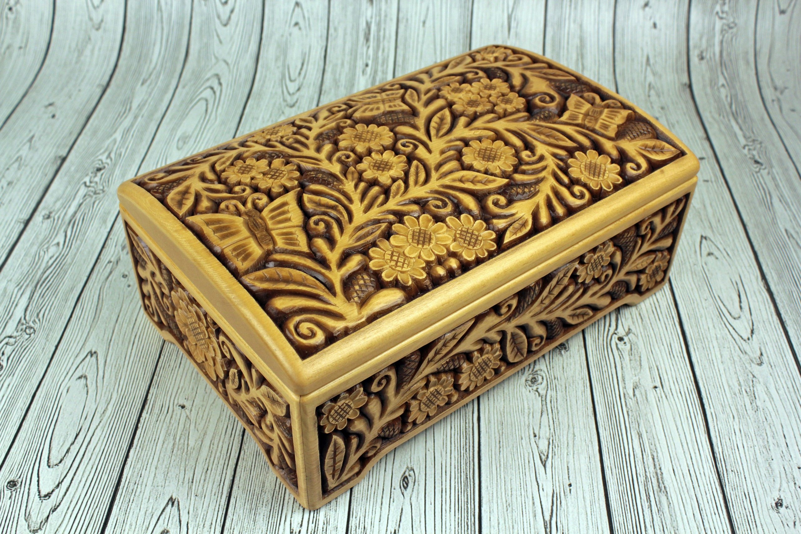 Деревянная шкатулка с резьбой