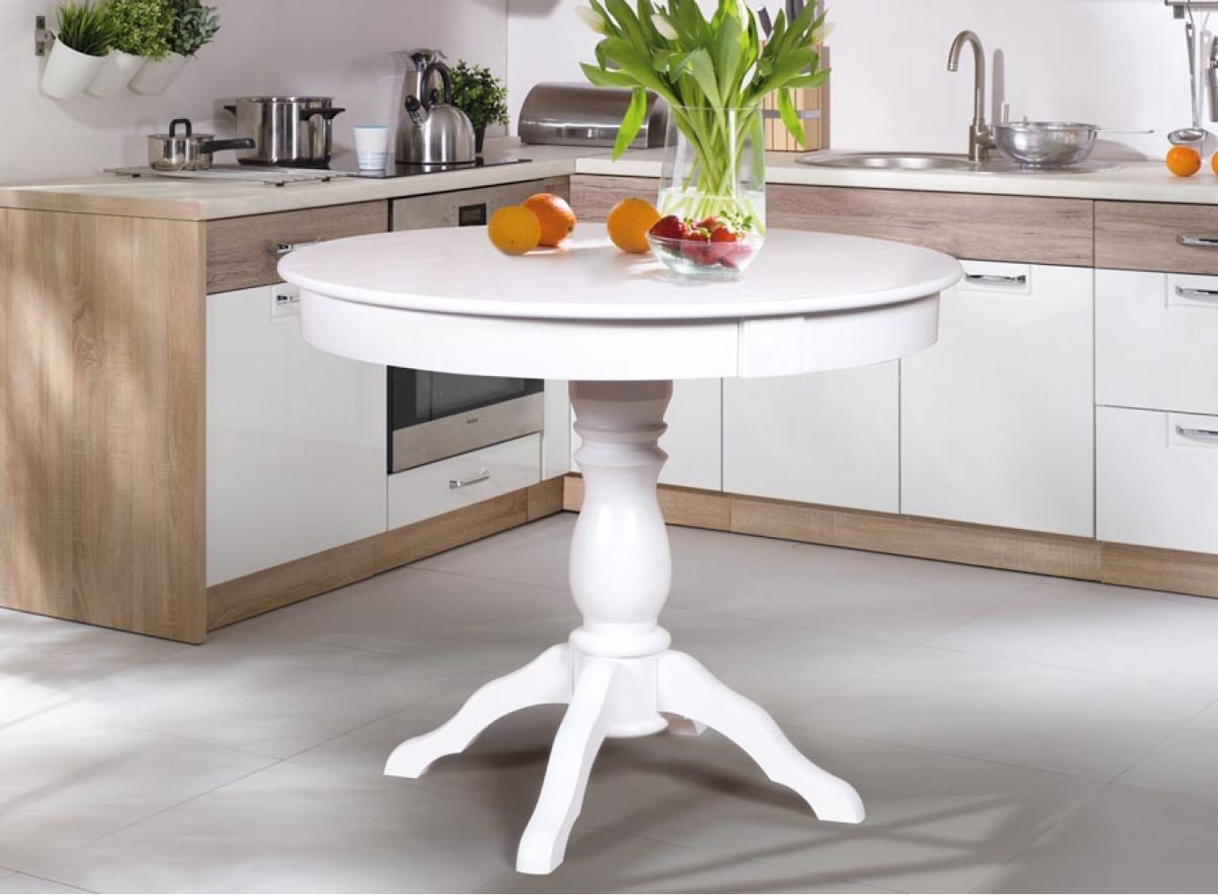 Обеденный стол круглый 120 см белый с состариванием White Rose