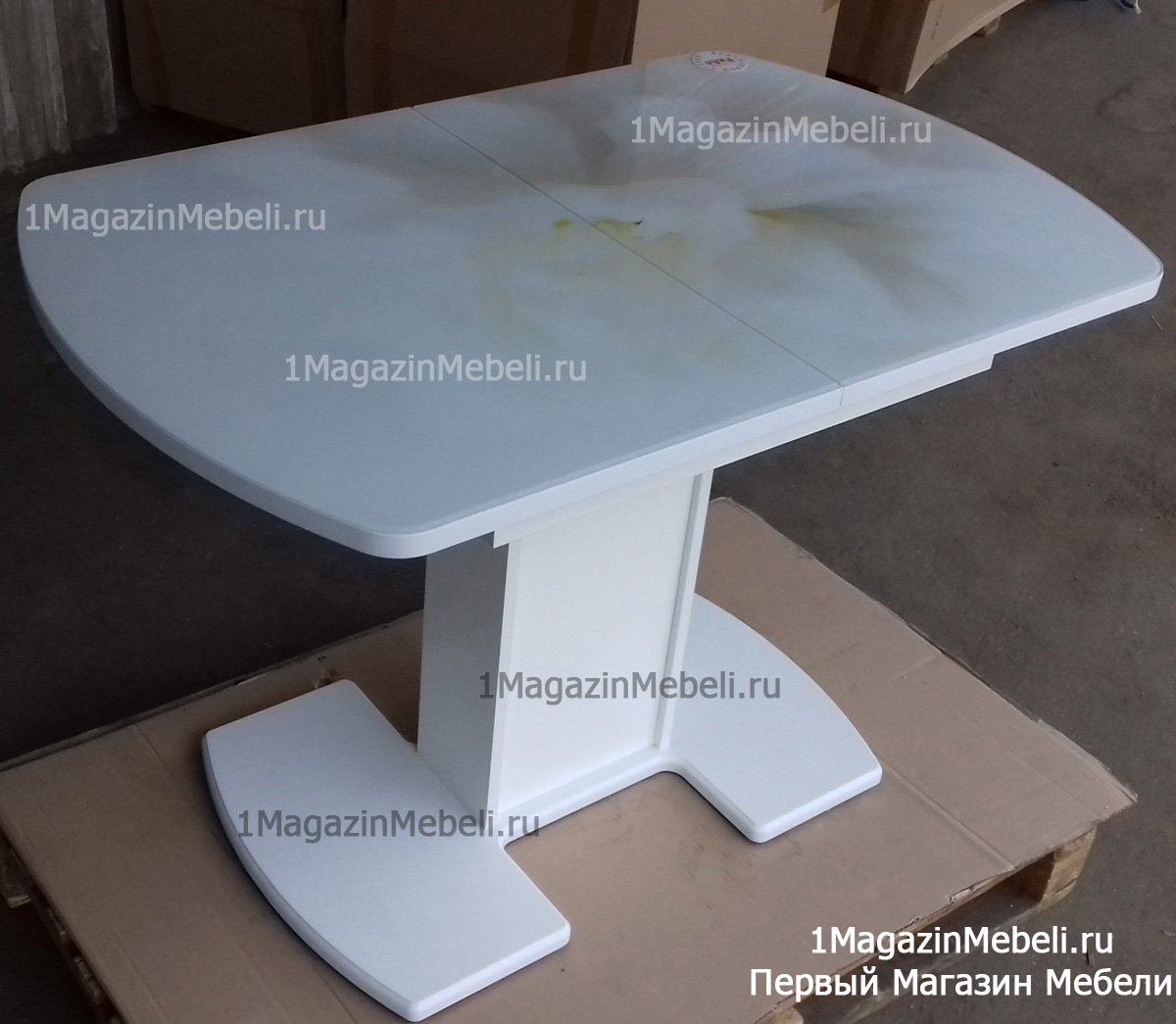 Стол Zetta 90 на 60 раздвижной белый со стеклом на одной ножке