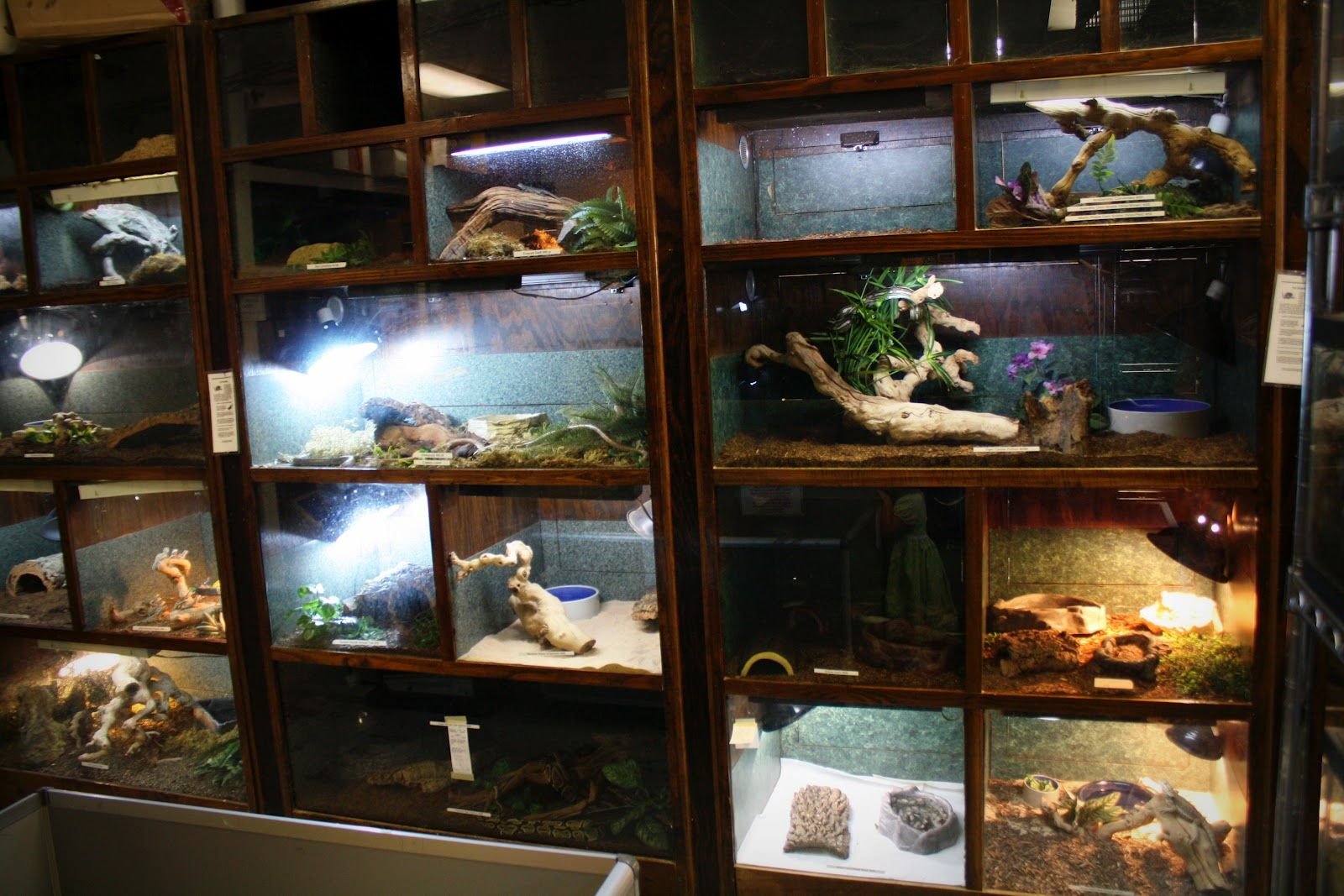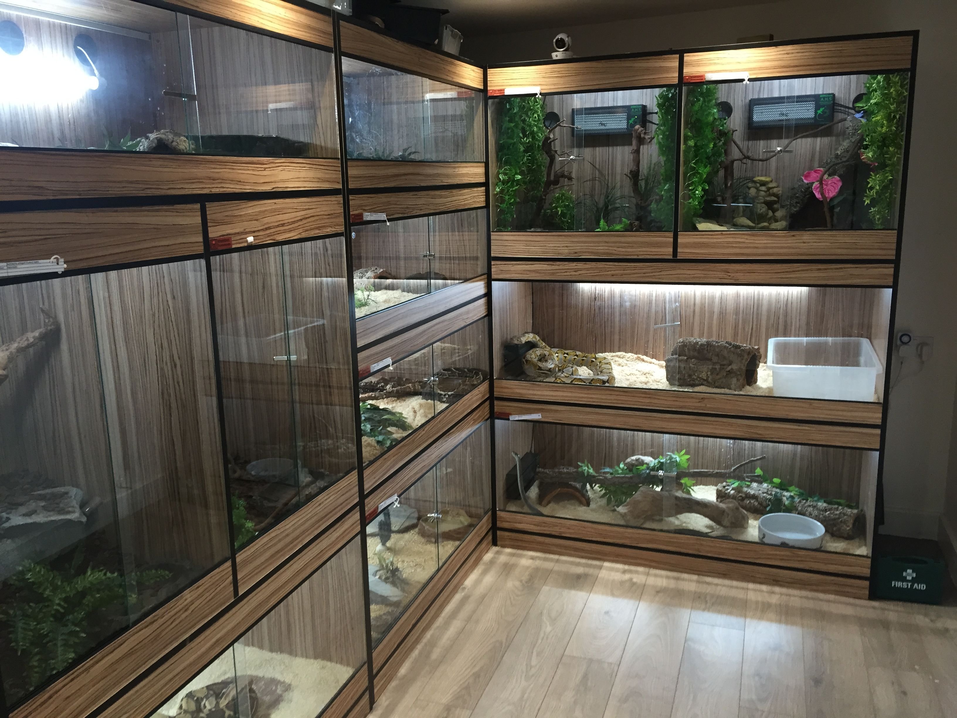 Комната со змеями в аквариумах