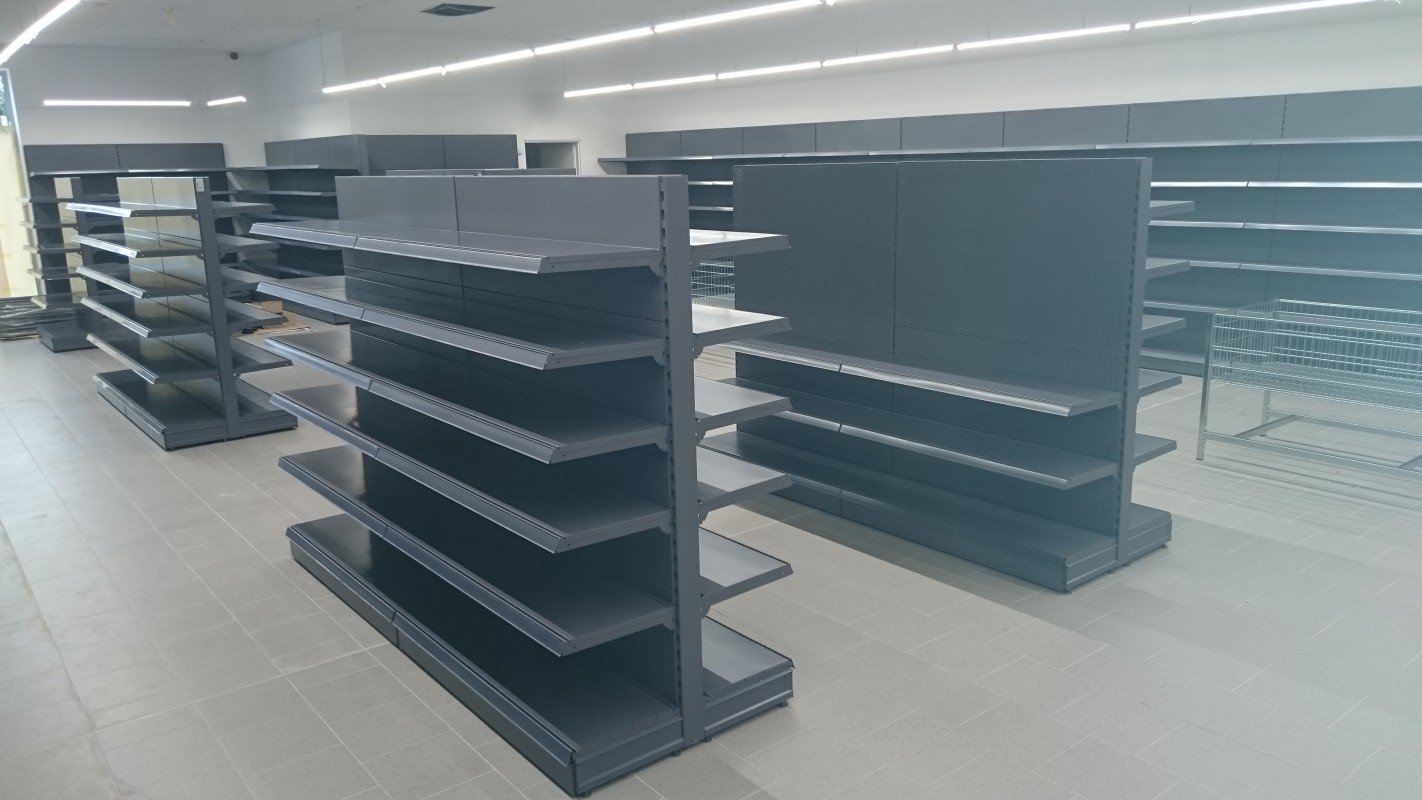 Стеллажи серые для магазина