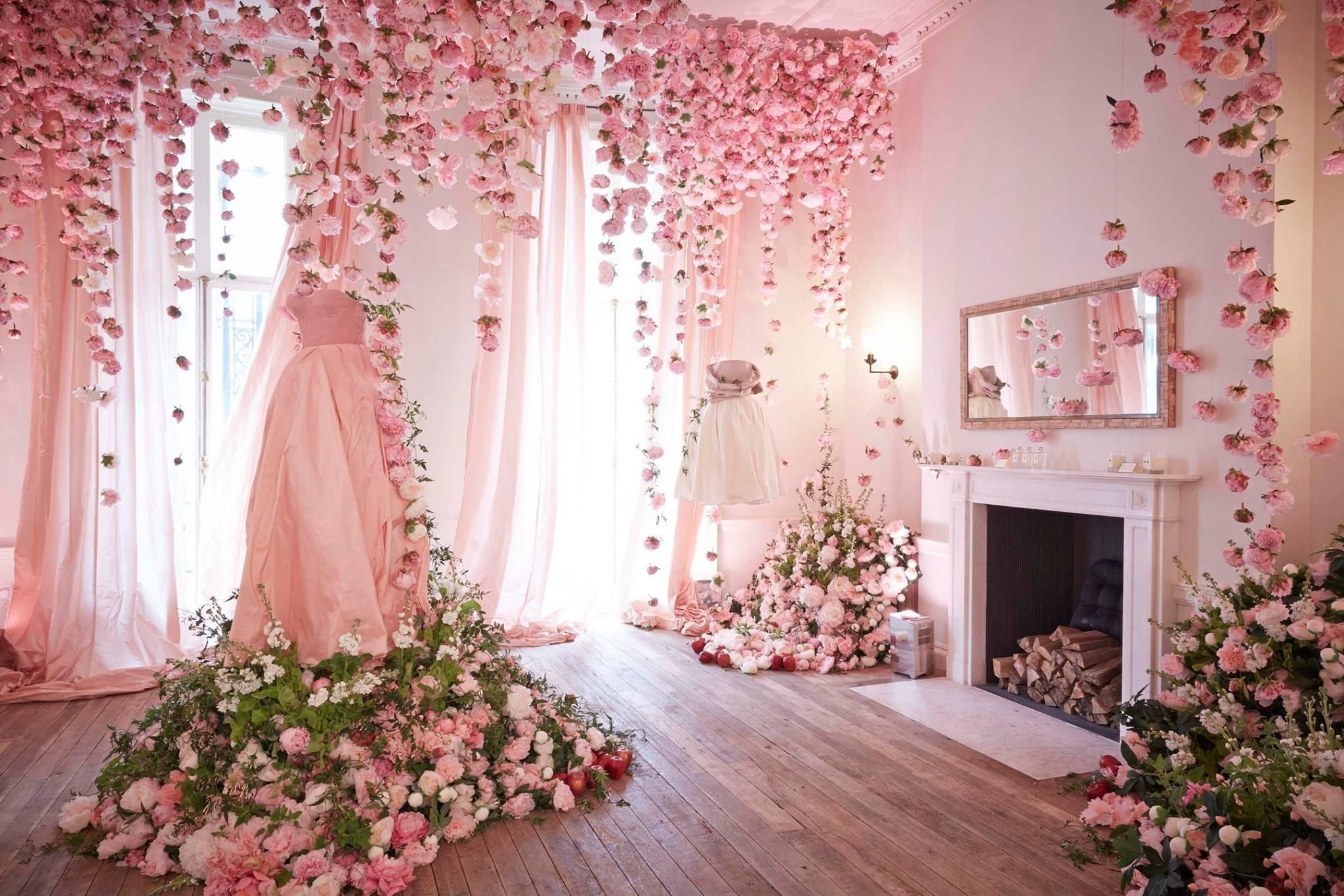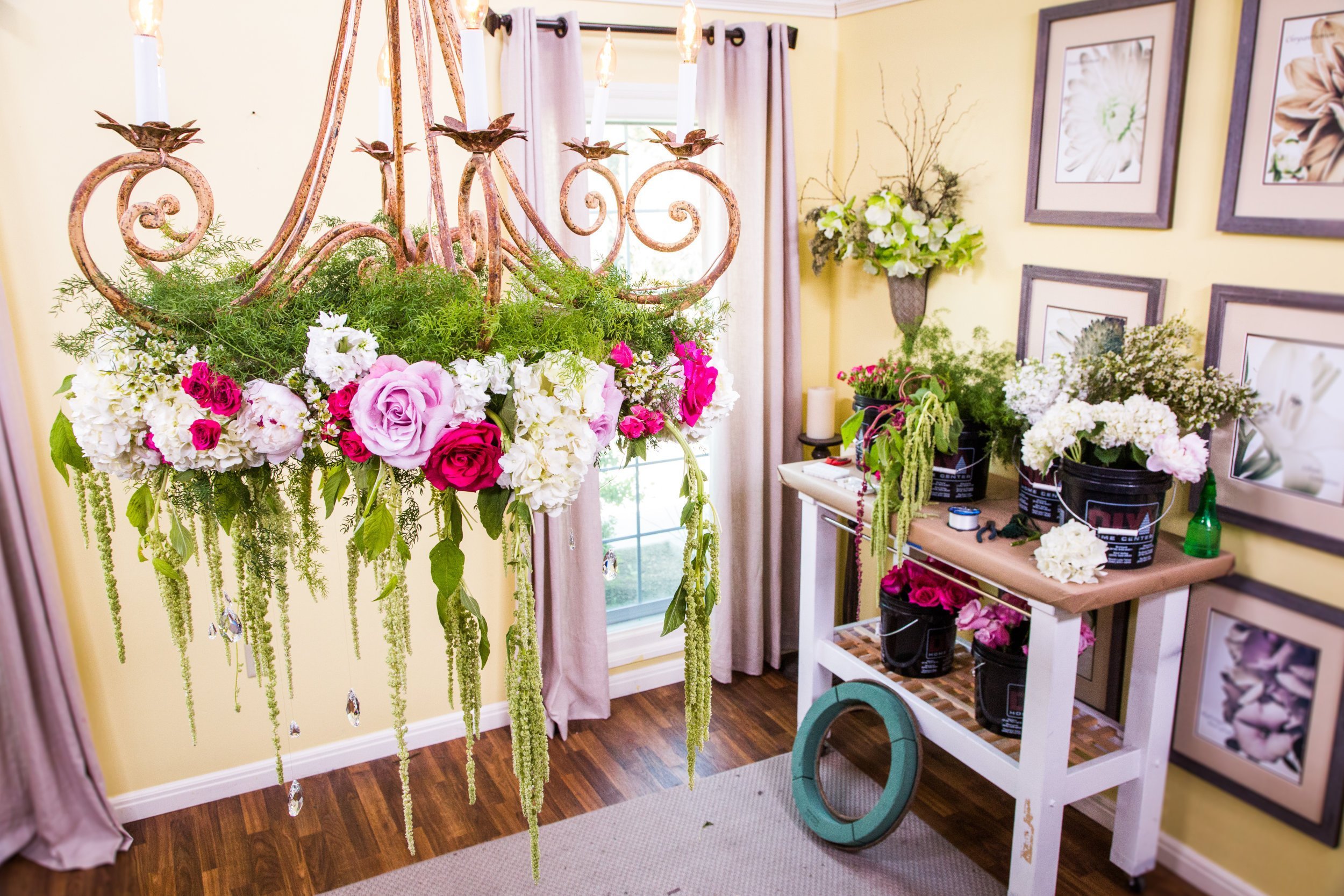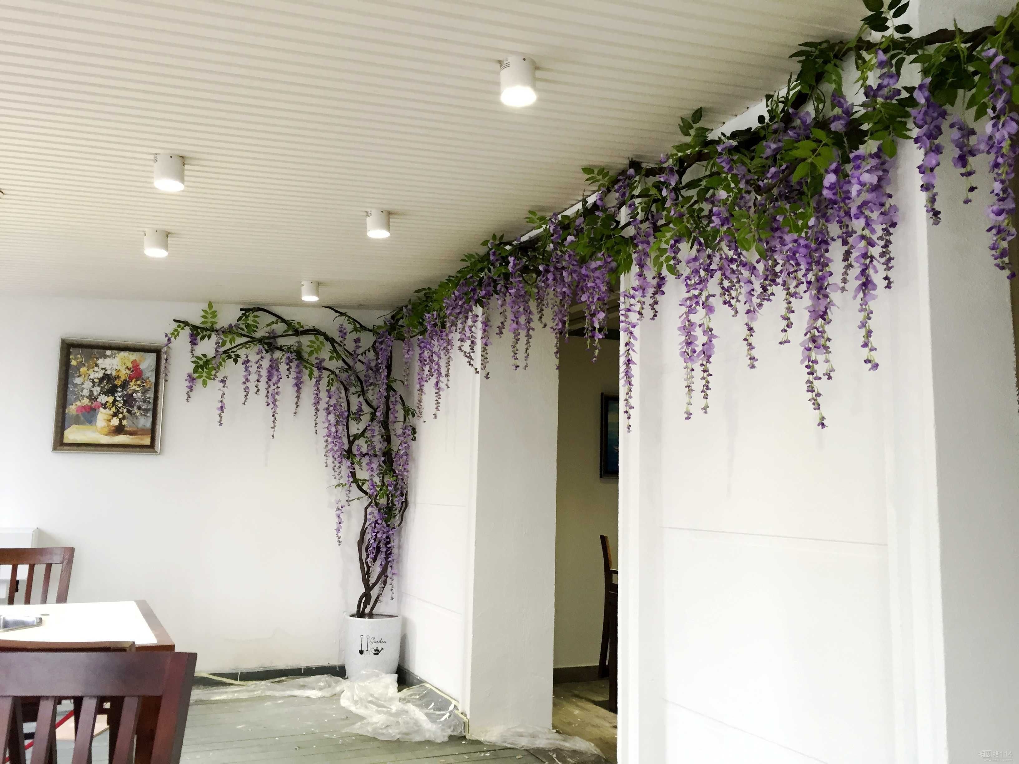 Украшение потолка искусственными цветами