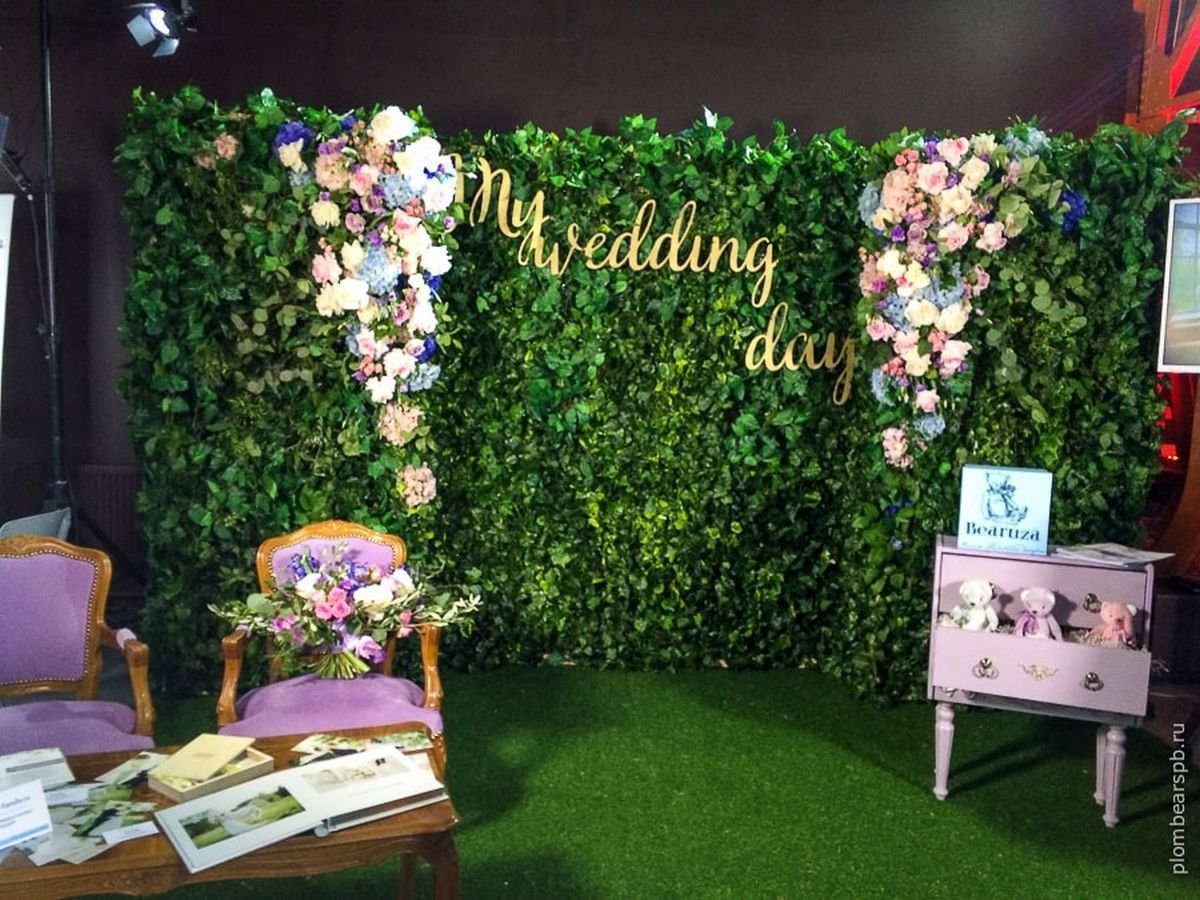 Фотозона с искусственными цветами