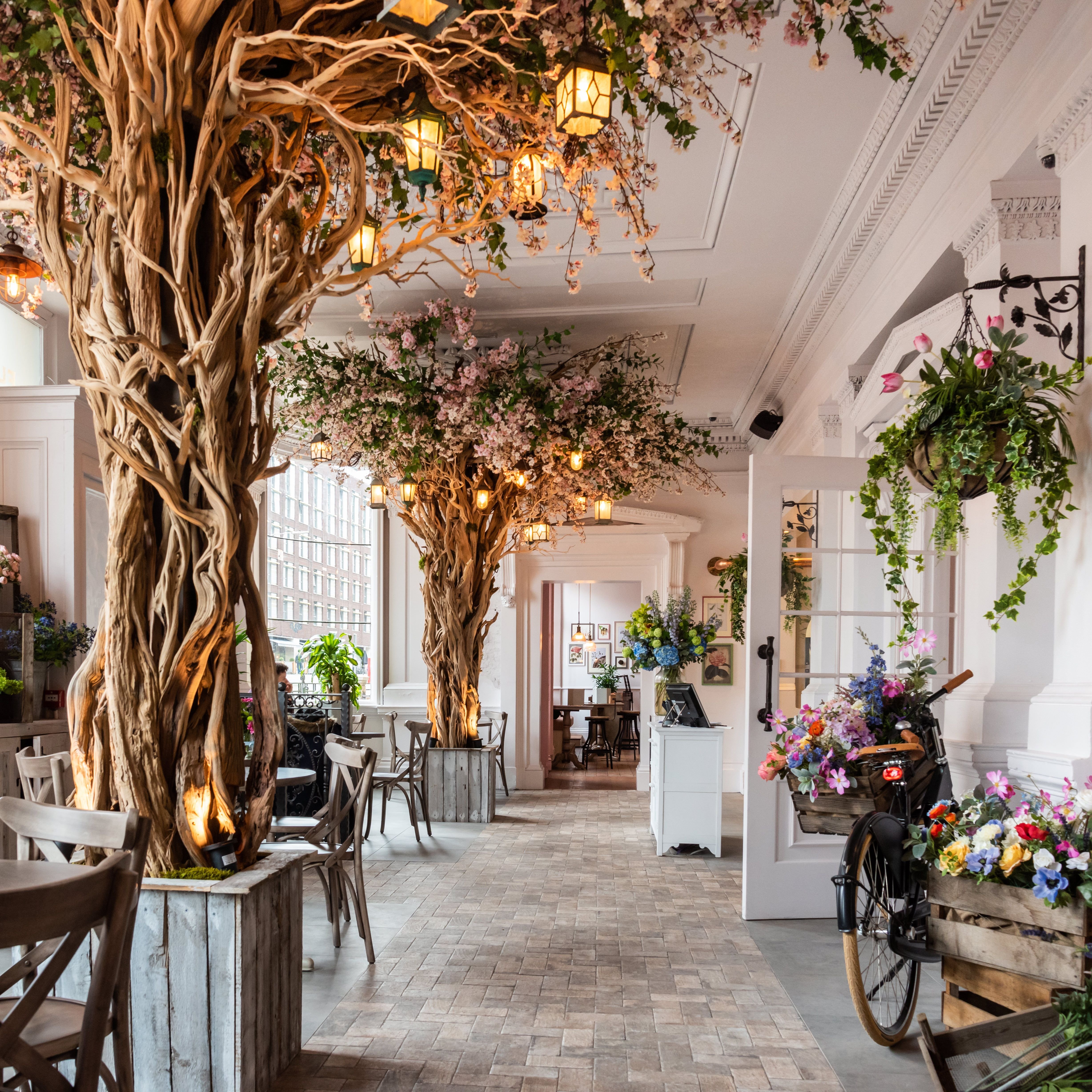Цветы в интерьере кафе
