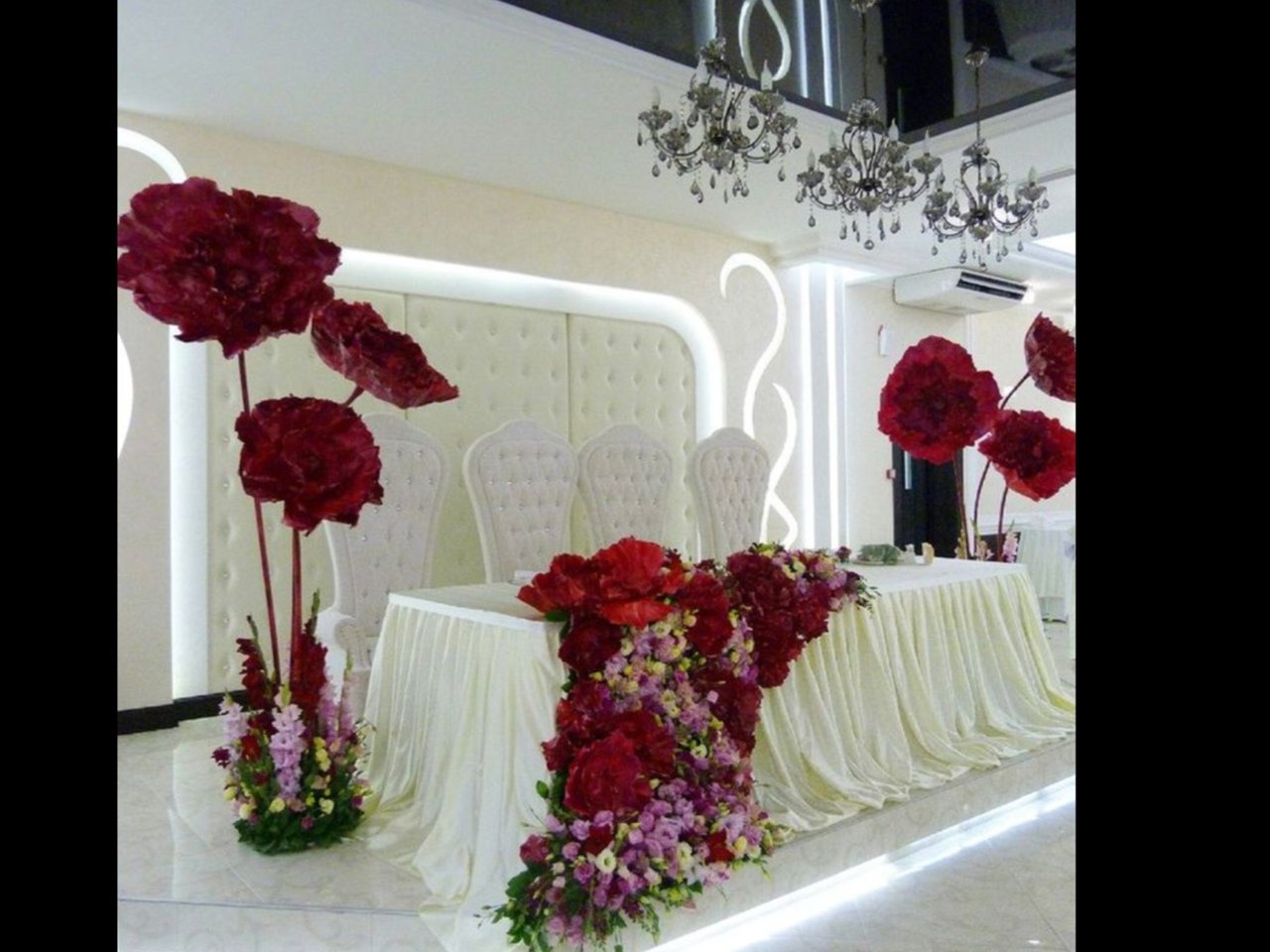 Украшение зала искусственными цветами