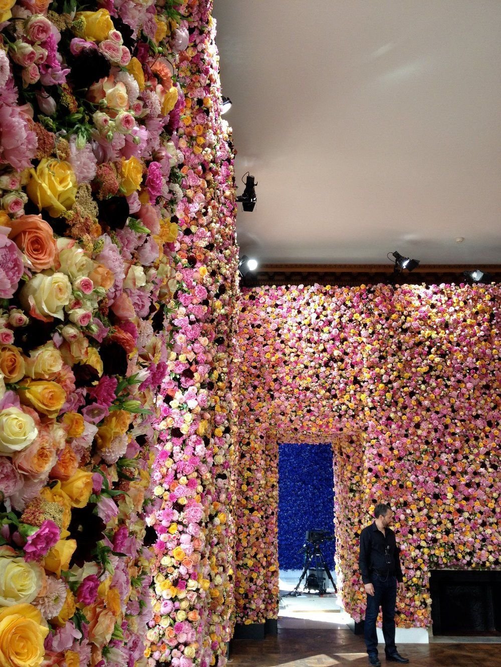 Стена из искусственных цветов