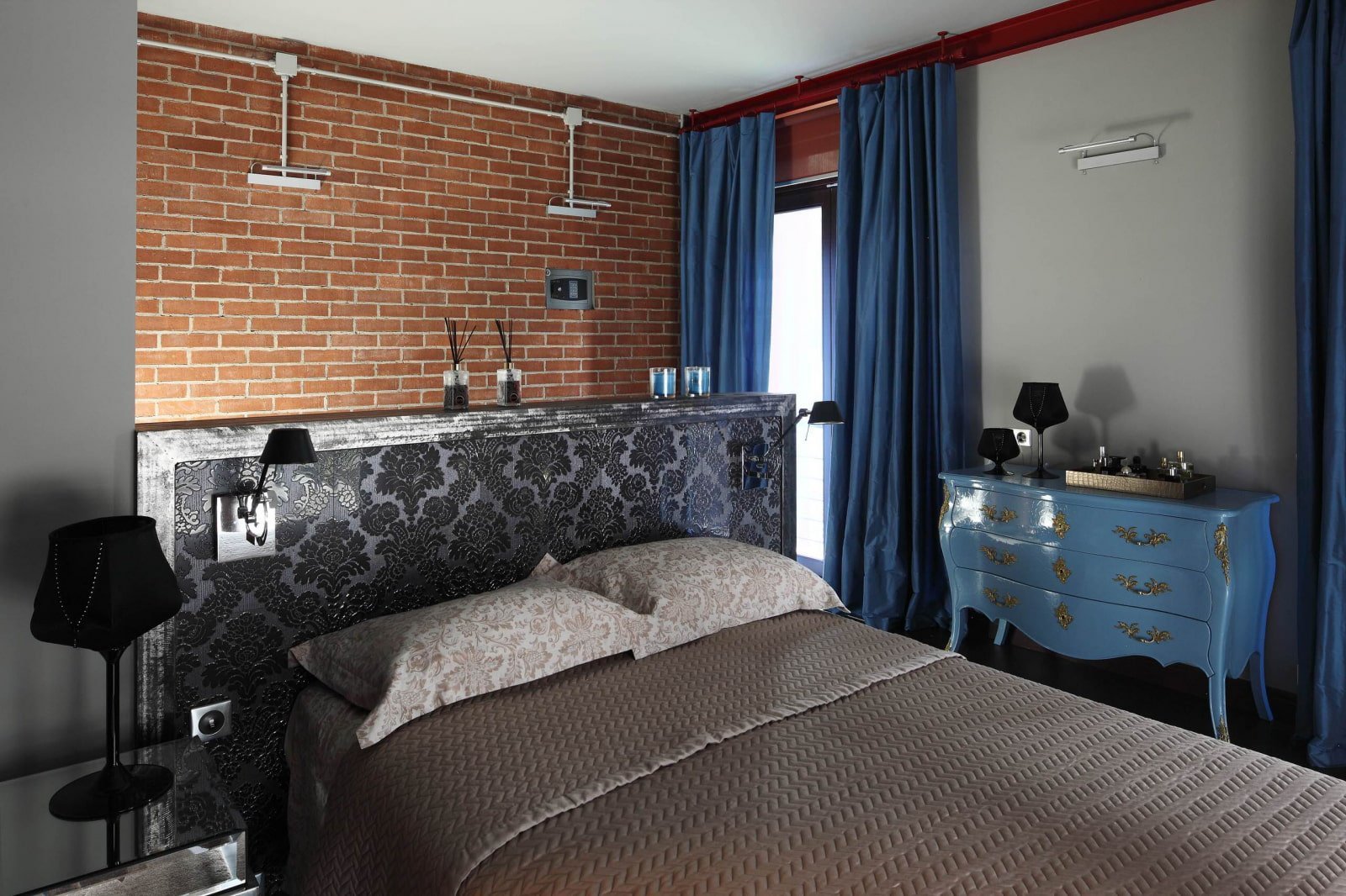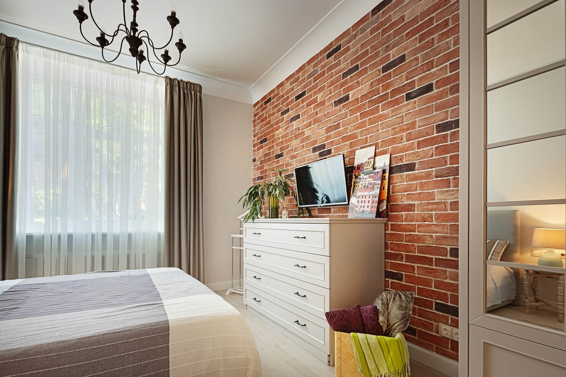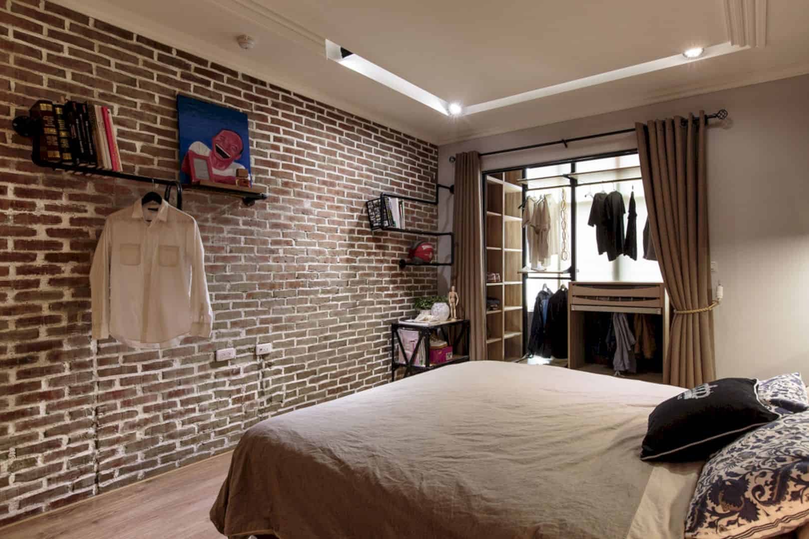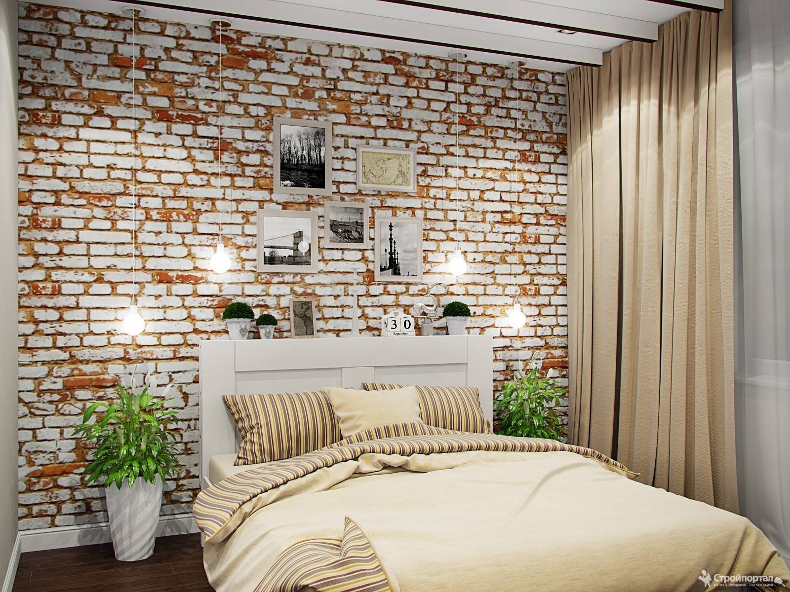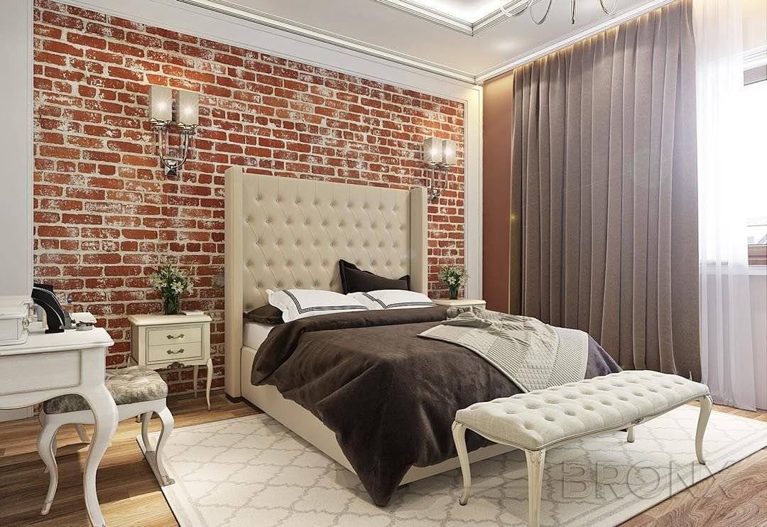 Кирпичная стена в спальне