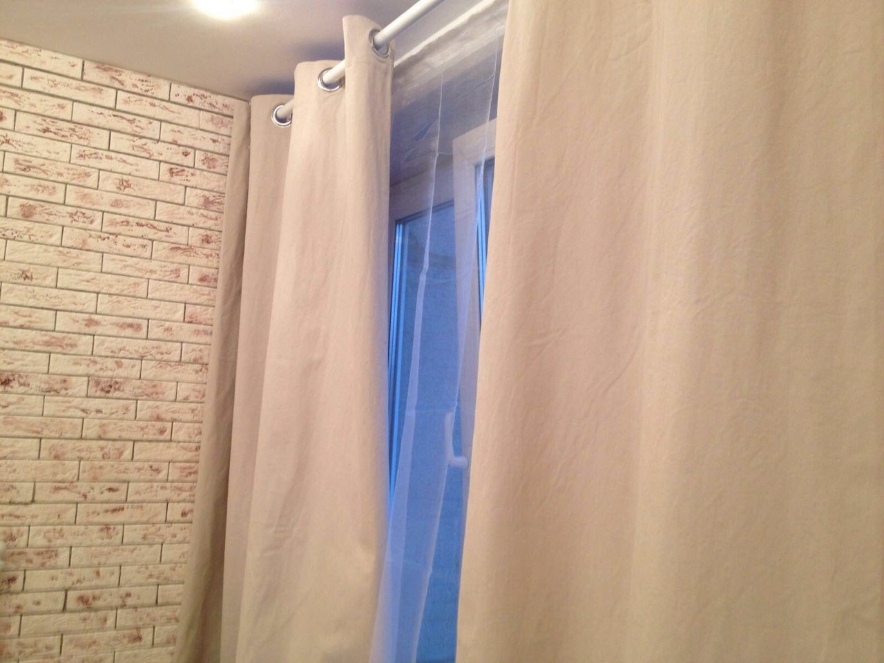 Шторы на кирпичной стене