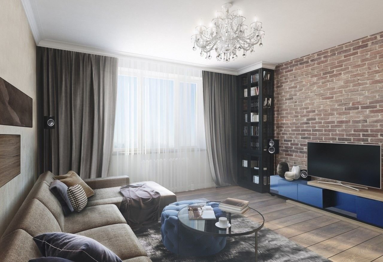 Интерьер лофт гостиная 15кв