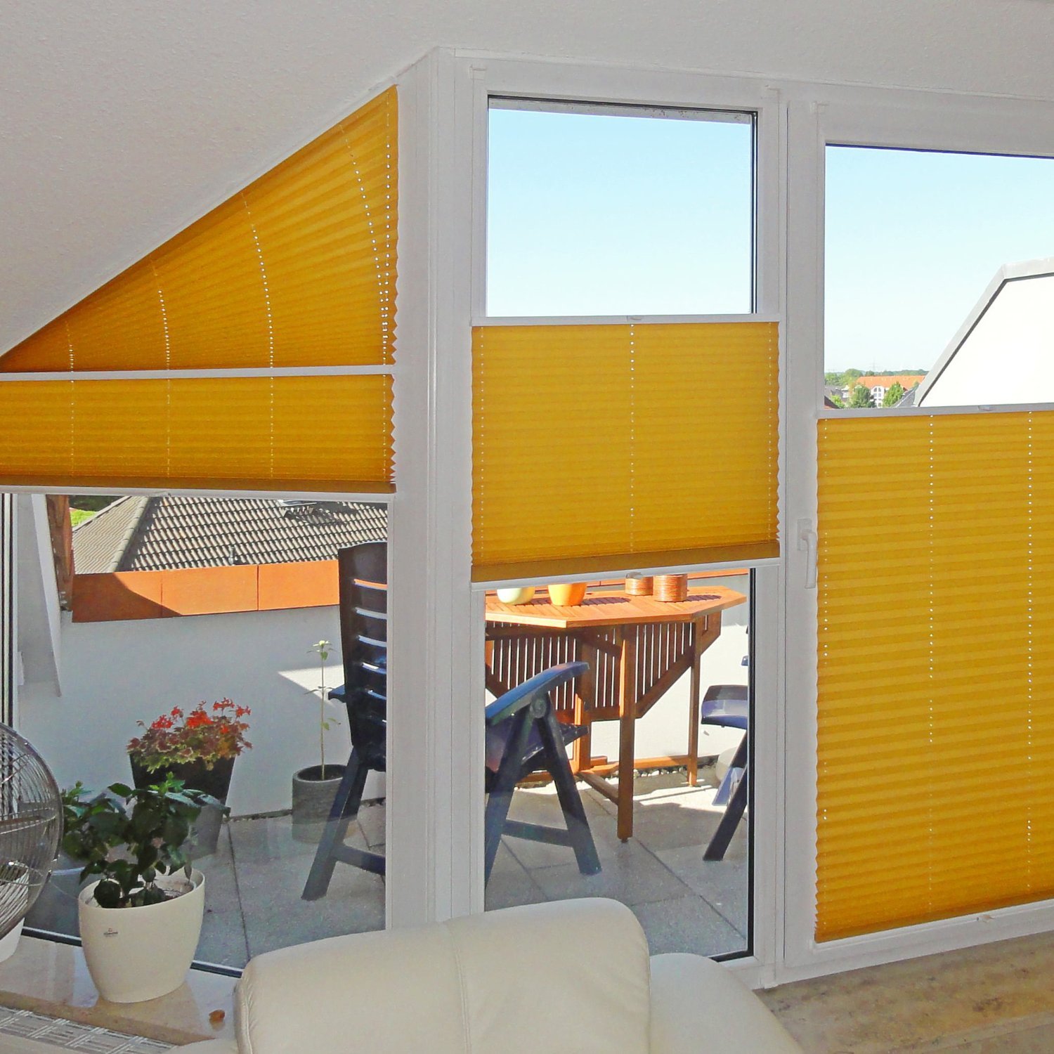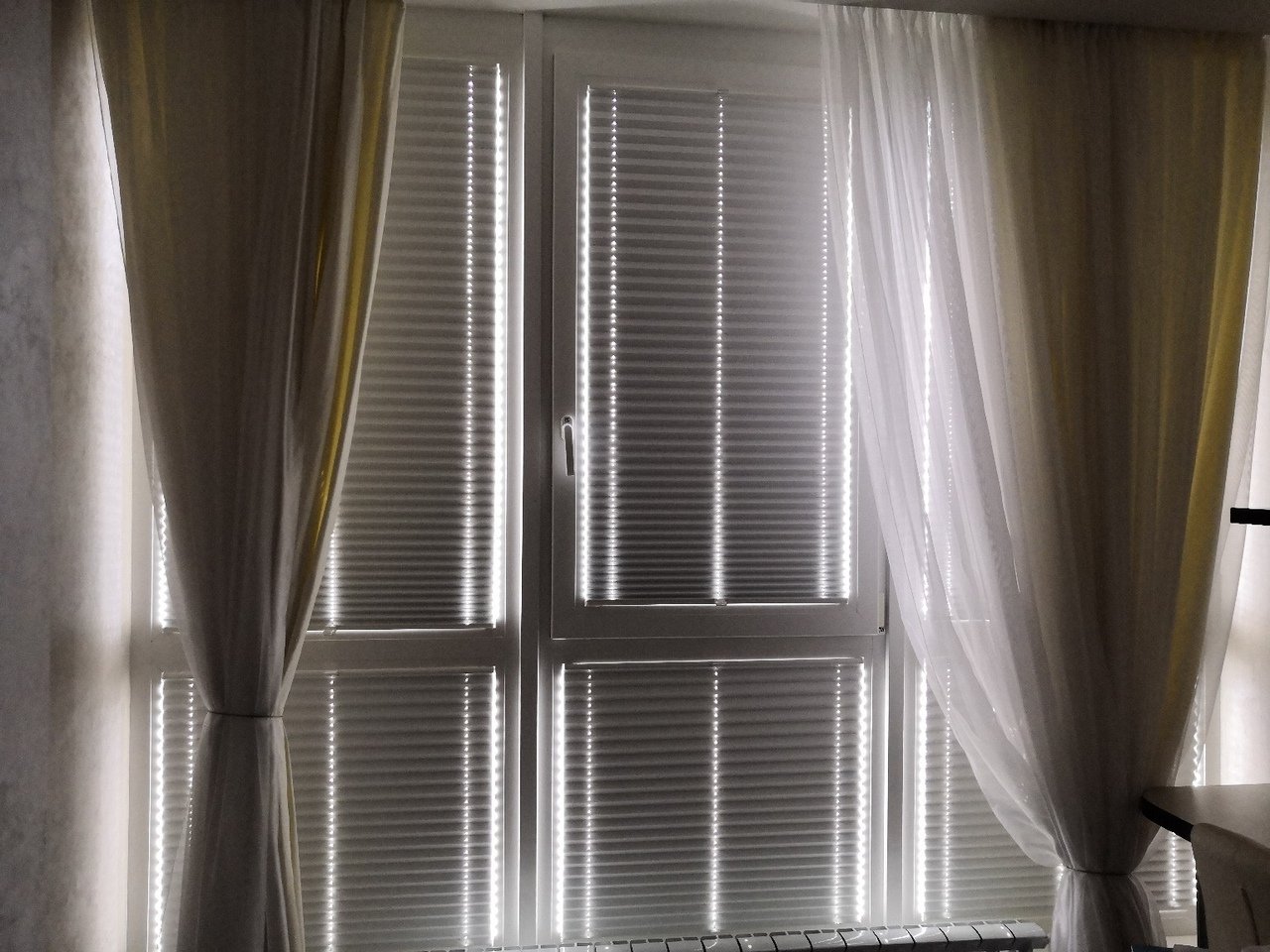 Шторы плиссе бумага на панорамной лоджии