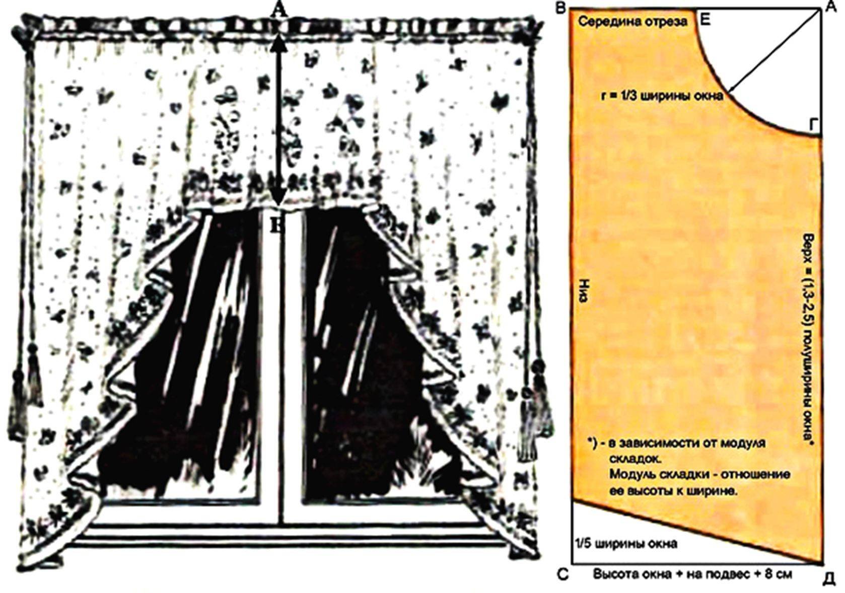 Выкройка шторы на кухню аркой