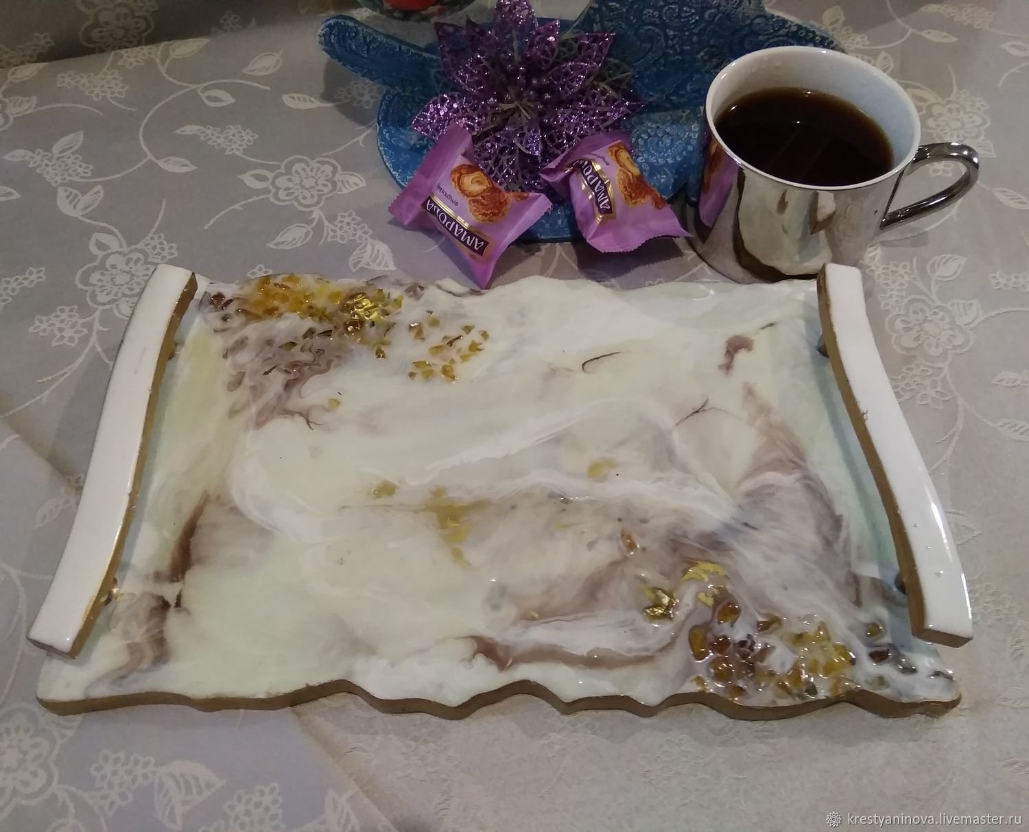 Блюдо из мрамора magistro Marble, 2-ярусное, в 25-20х28 см, цвет белый