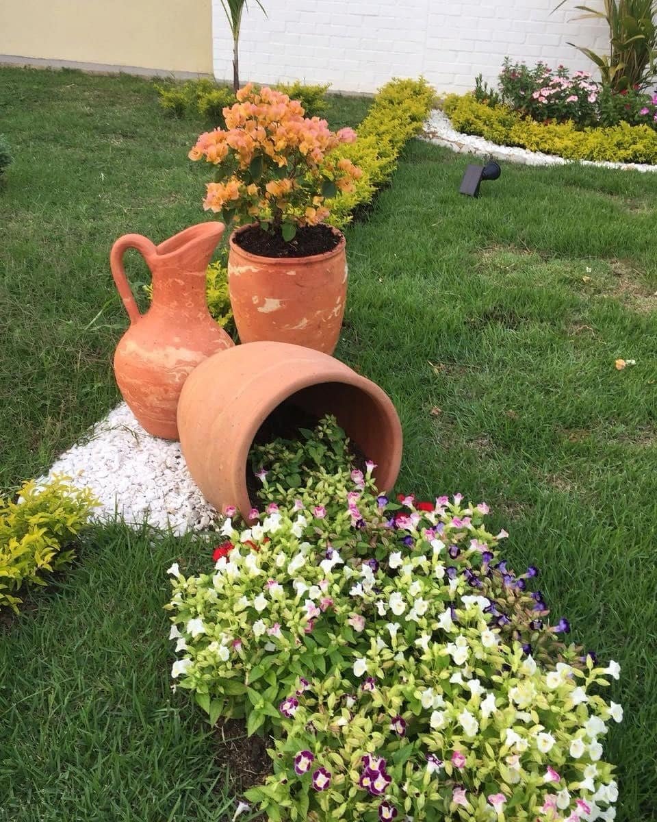 Клумбы с керамическими горшками
