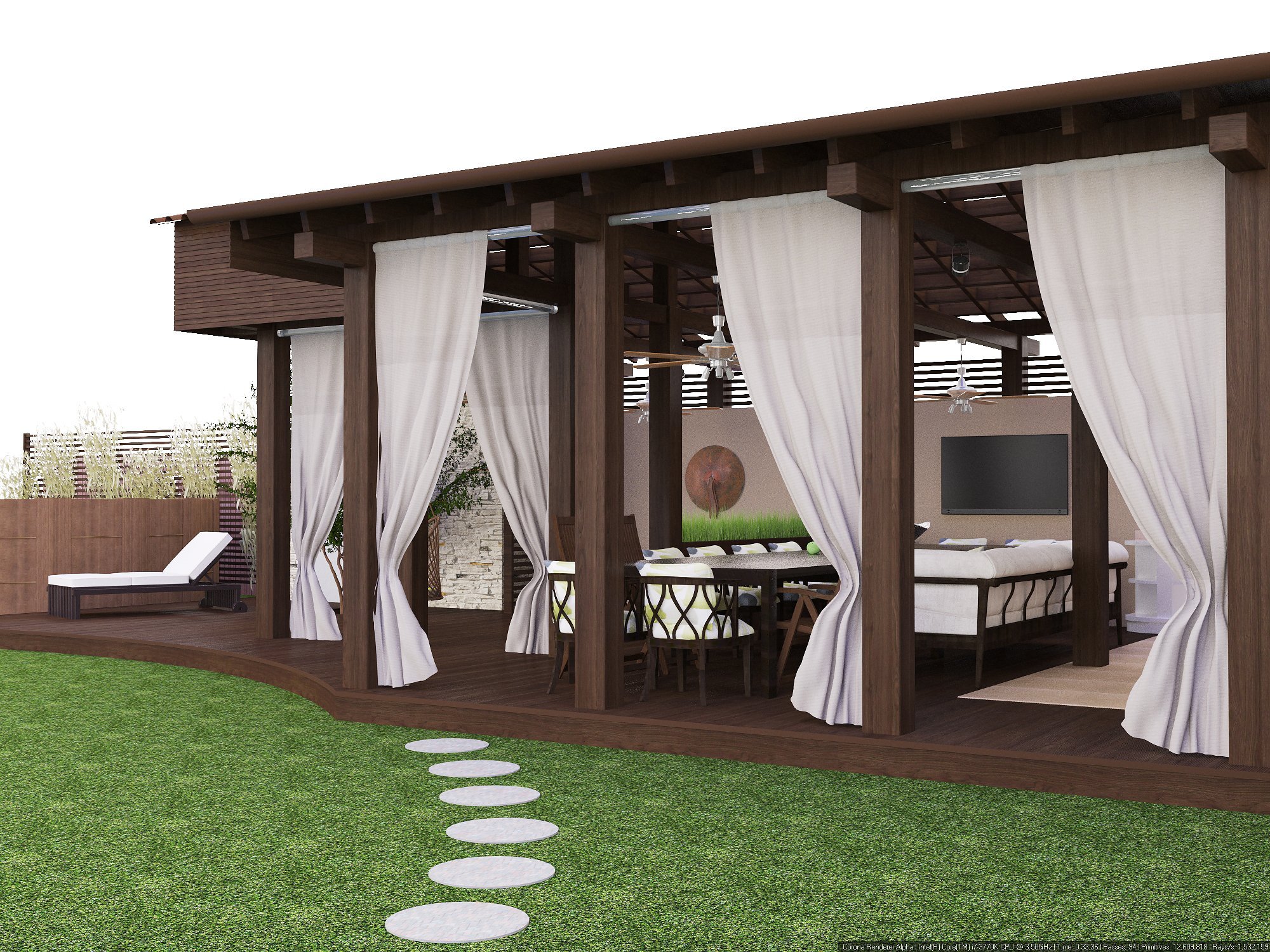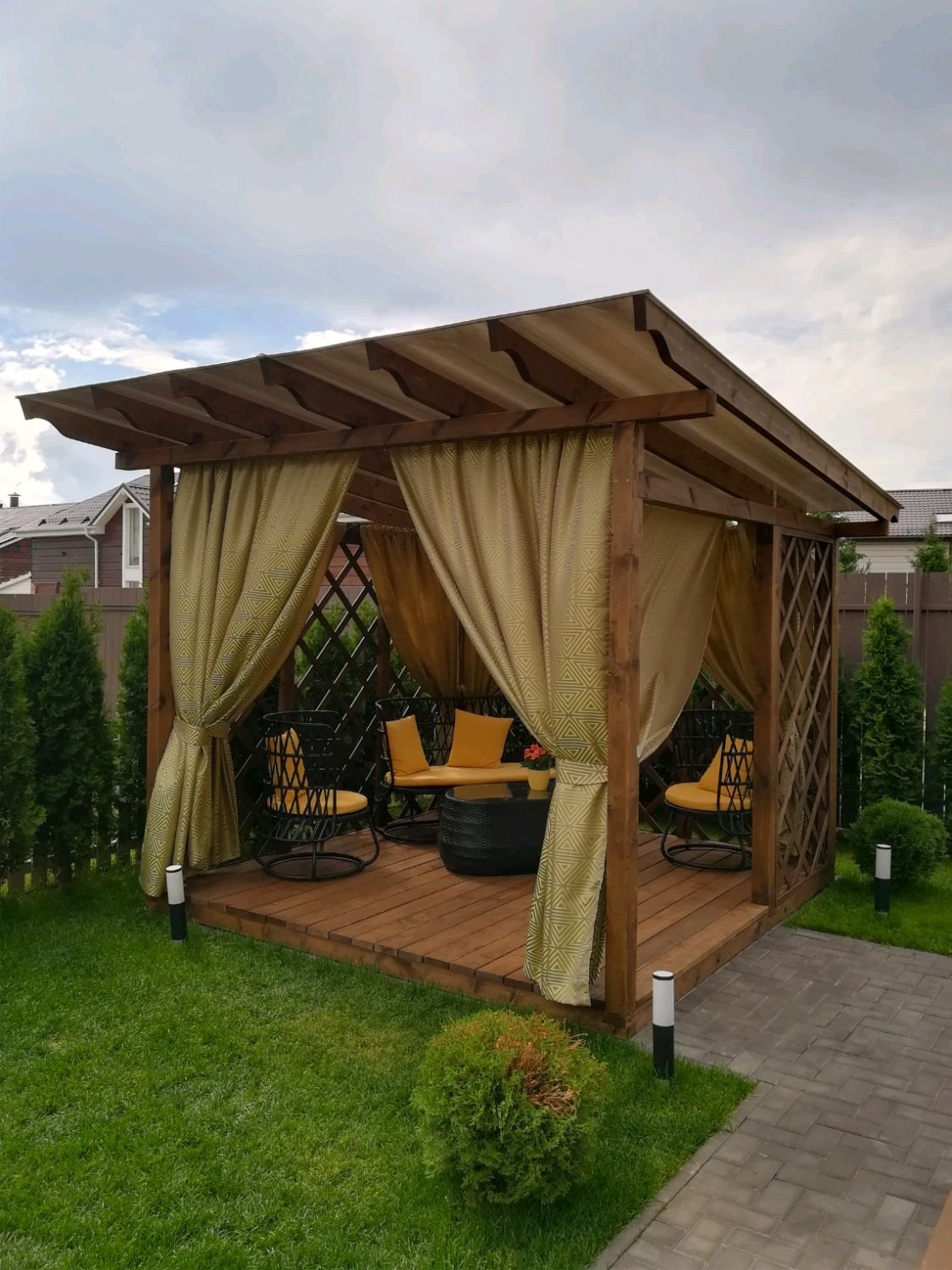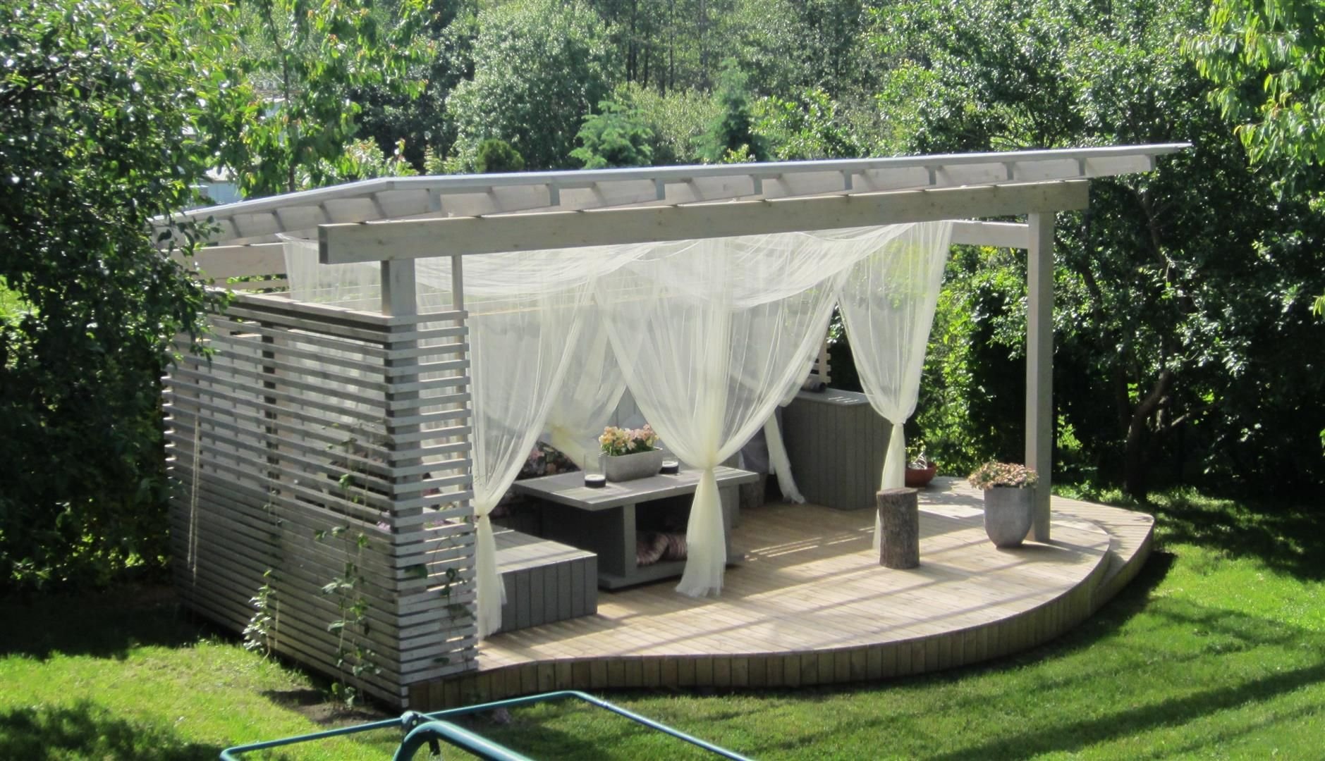 Деревянная беседка со шторами