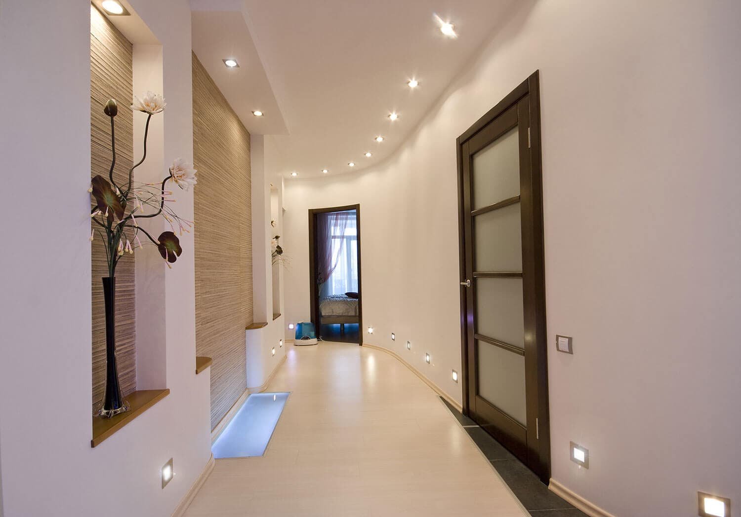 Точечные светильники в узком коридоре