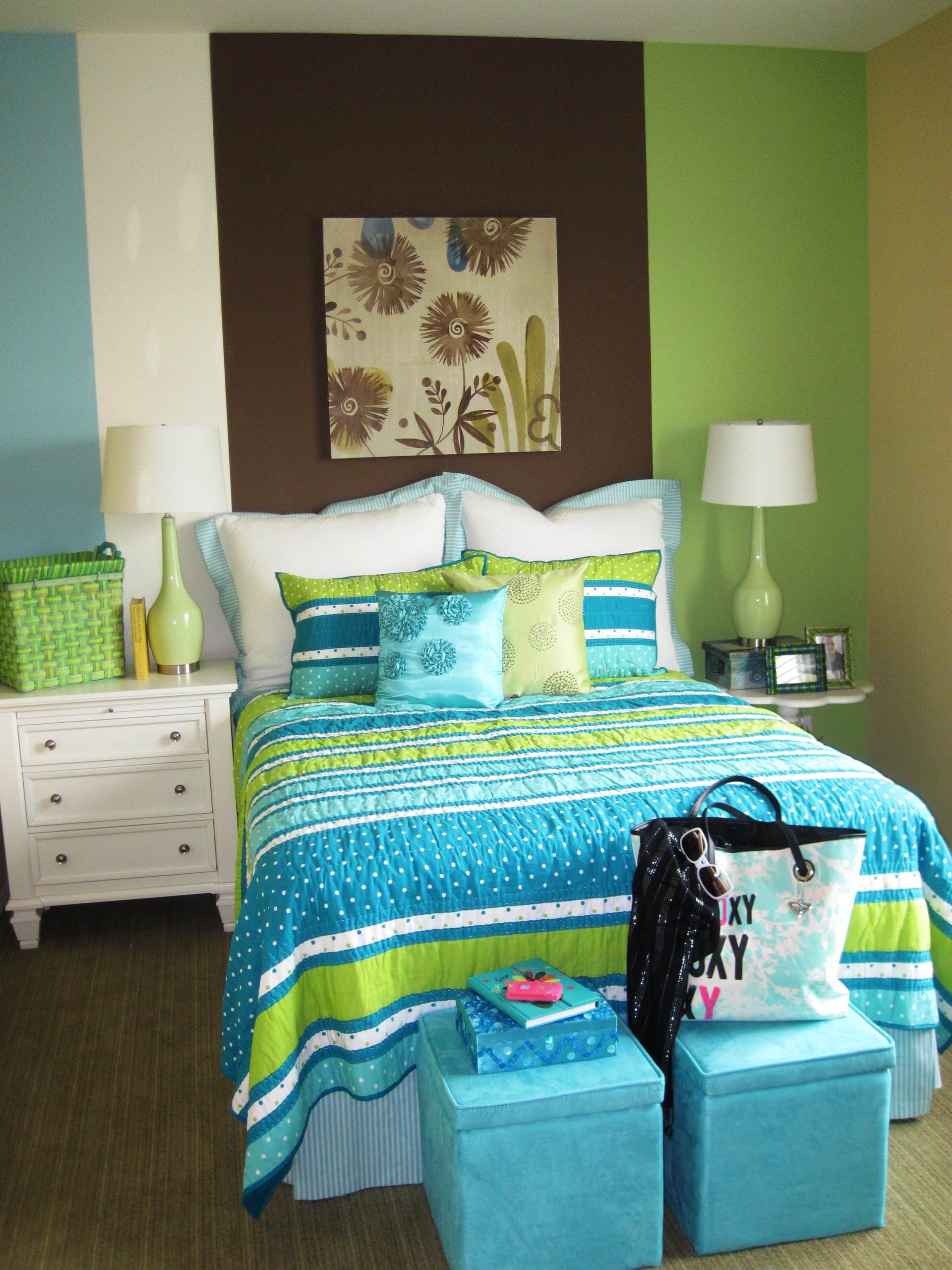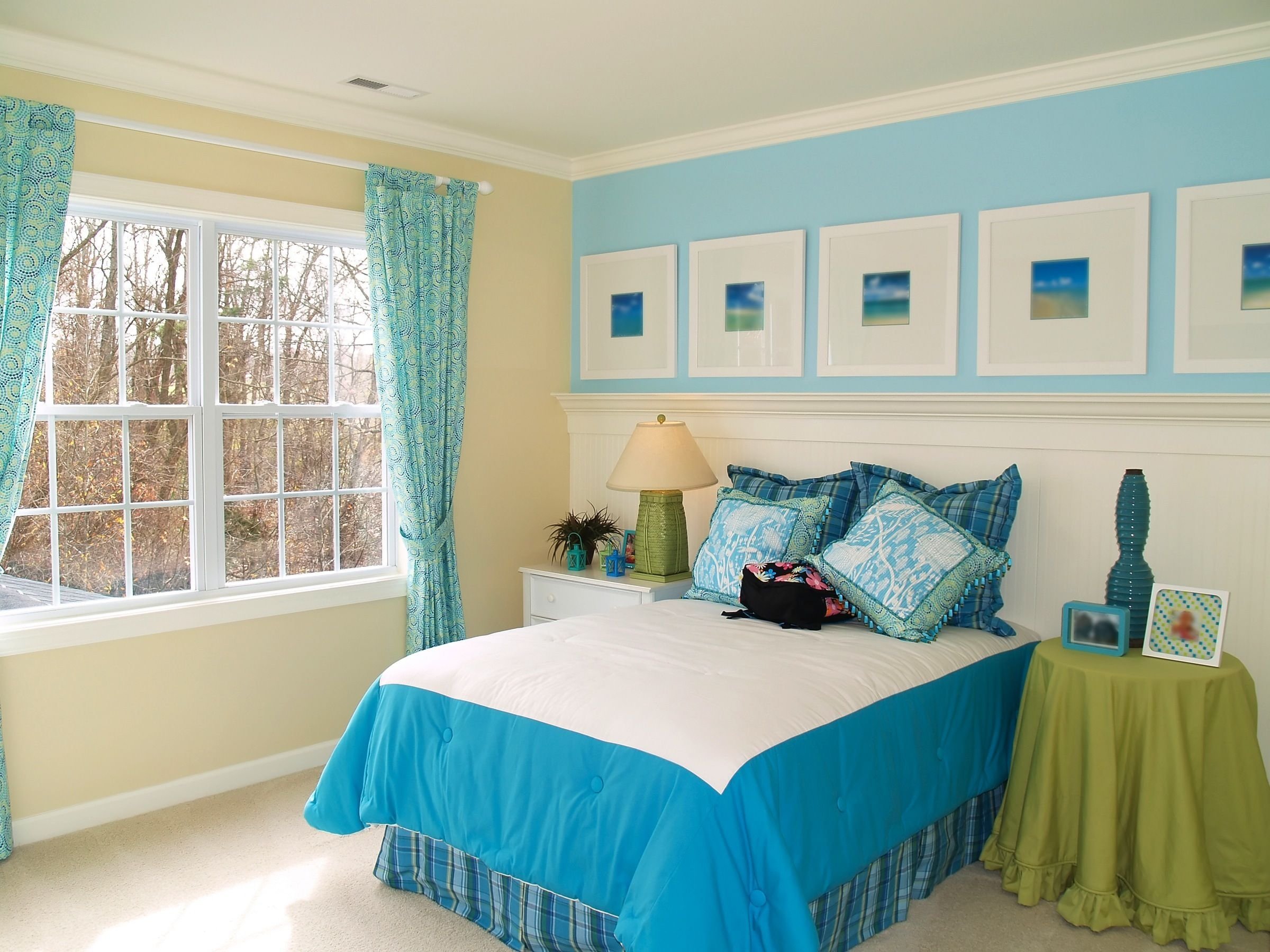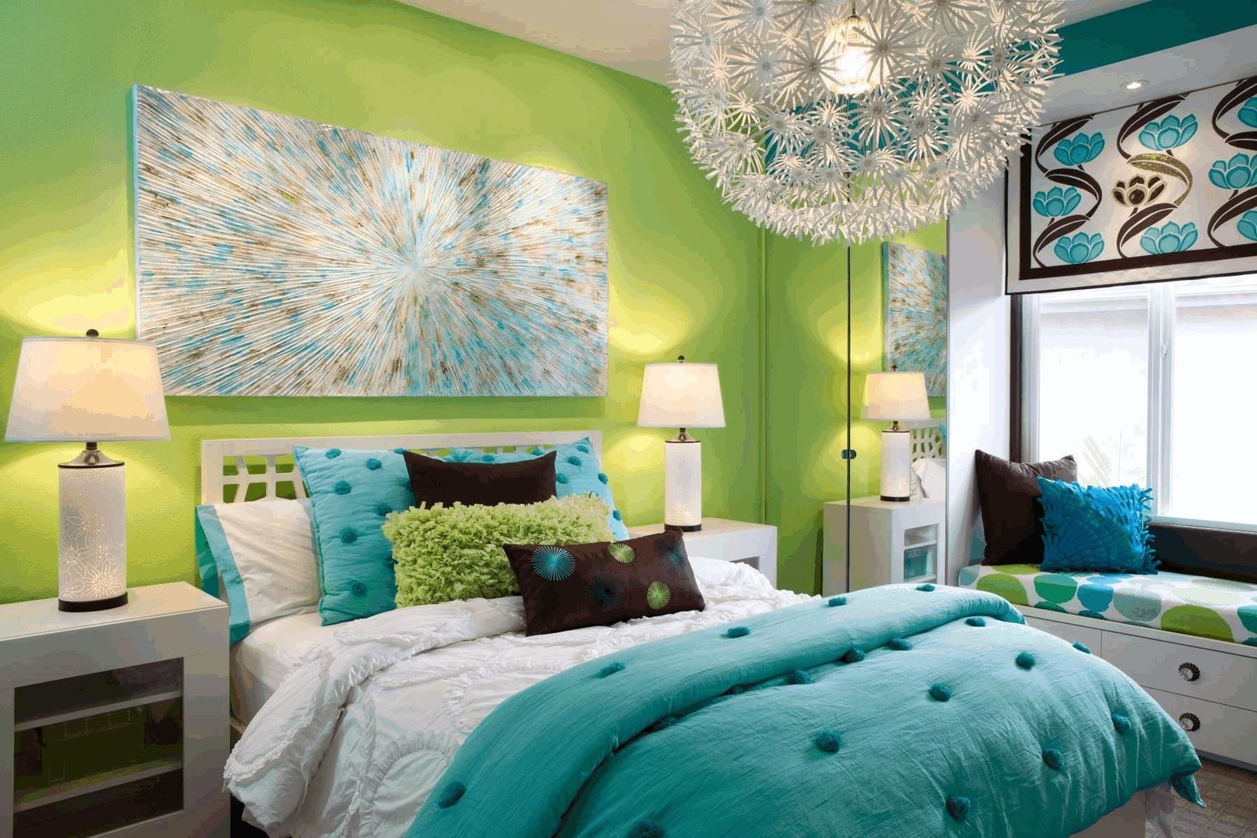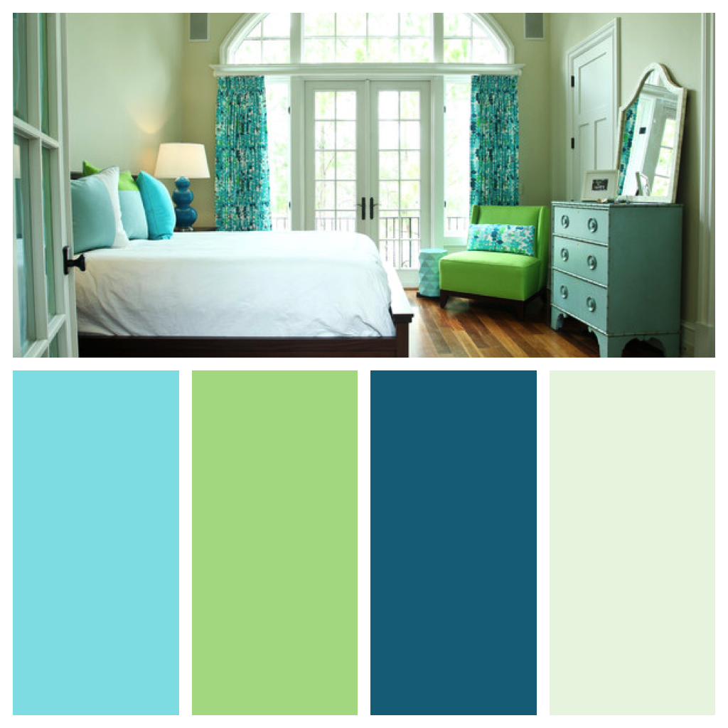 Сине зеленая спальня