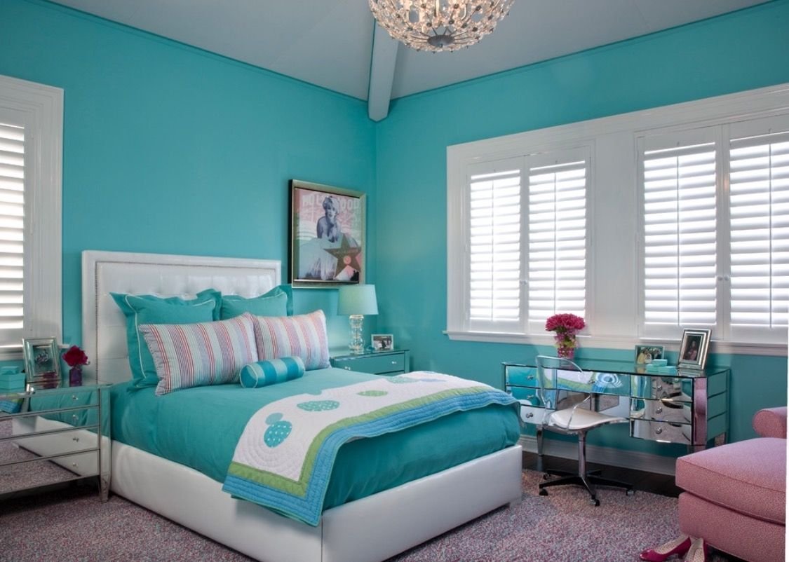 Красивая спальня цвет бирюза