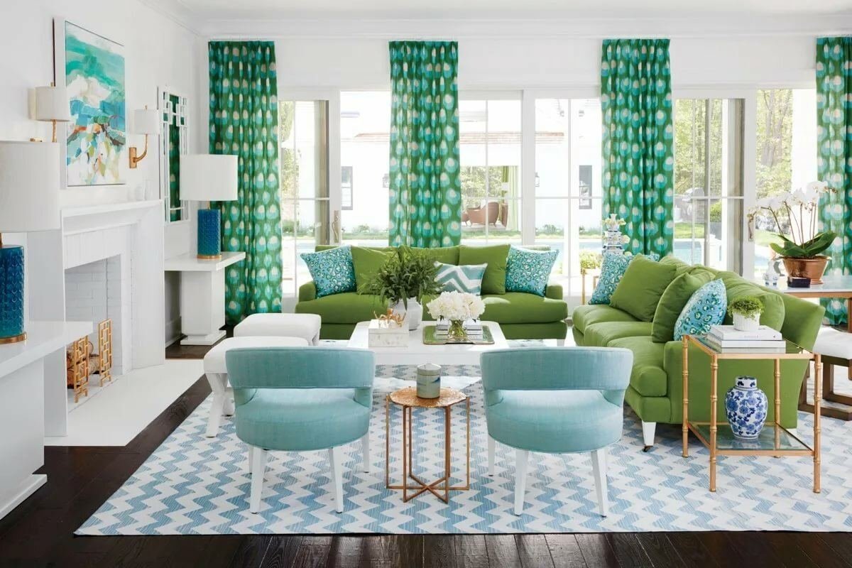 Сине-зеленый цвет в интерьере