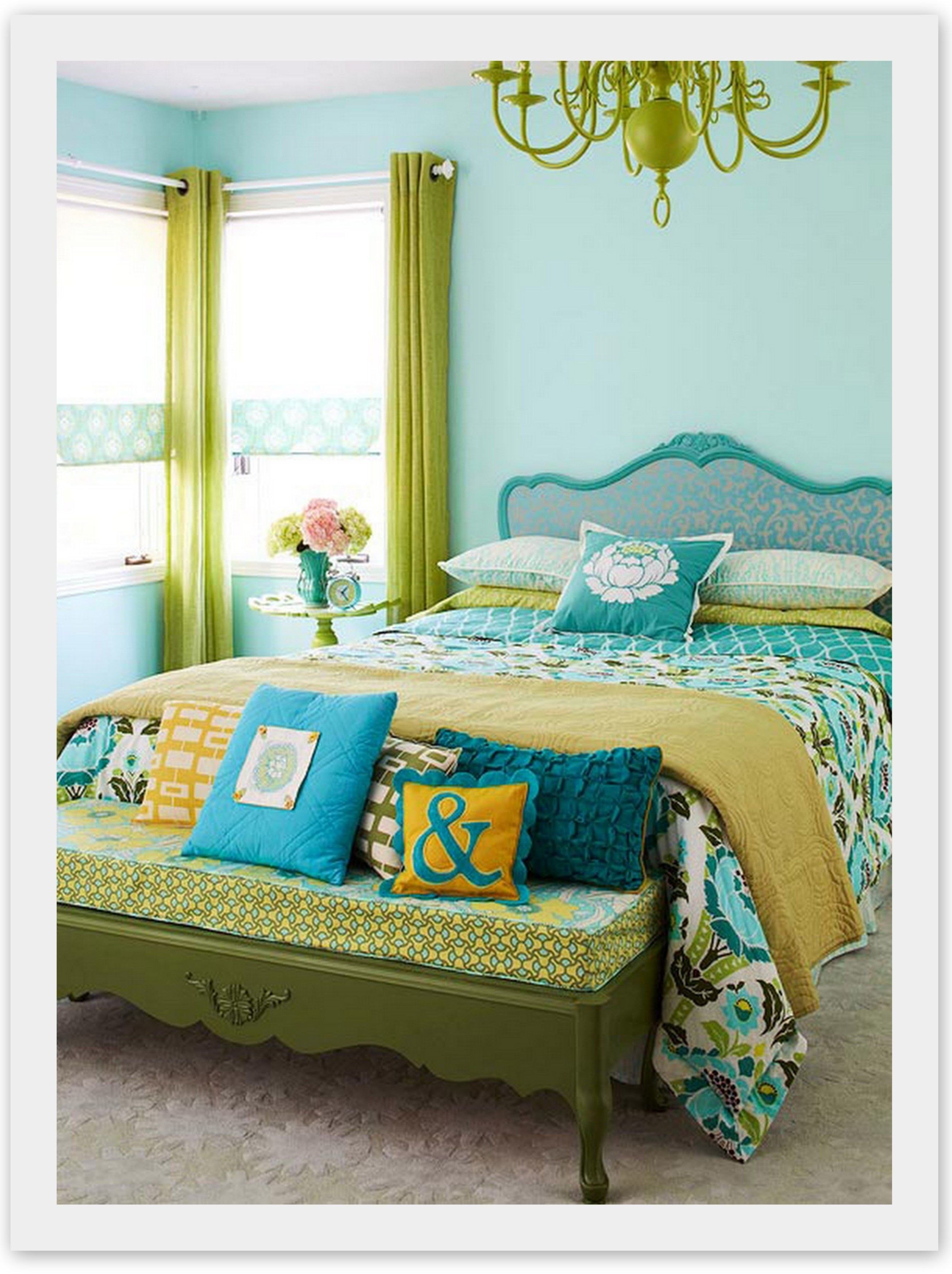 Спальня в бирюзово желтых тонах
