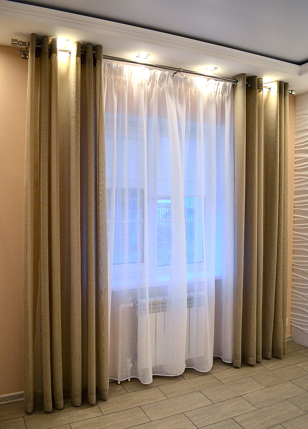 Шторы двойные на круглом карнизе