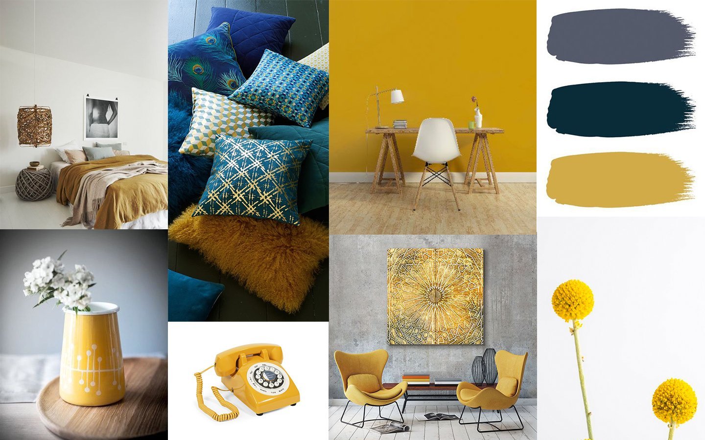 Бирюзовый и горчичный в интерьере